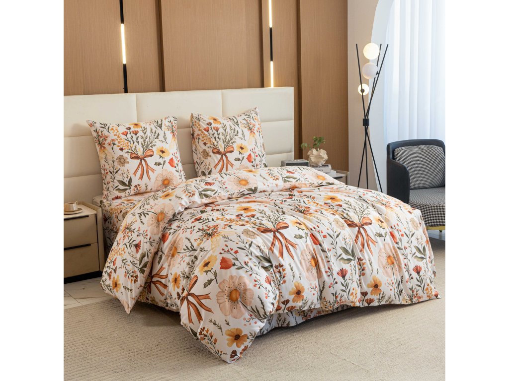 Mikroszálas ágyneműhuzat FLORAL RIBBON krémszínű