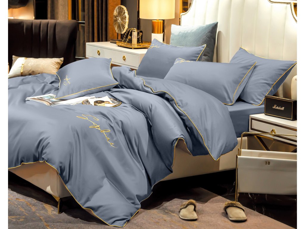 Mikroszálas SOPHAE ágynemű világosszürke arany hímzéssel