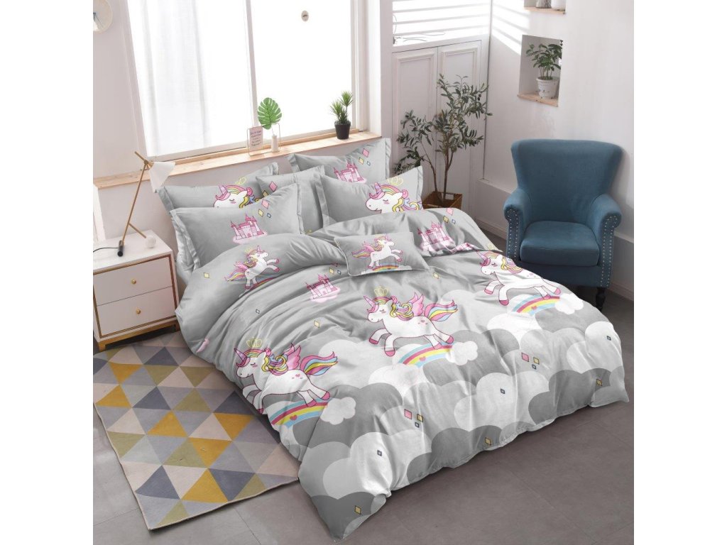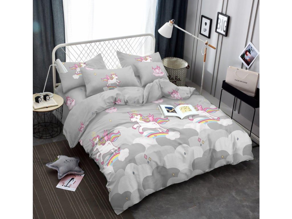 QUEEN UNICORN szürke mikroszálas ágyneműhuzat
