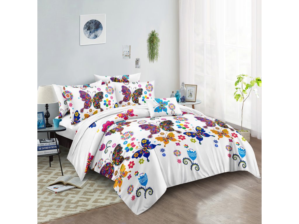 SZÍNES PILLANGÓ fehér mikroszálas ágyneműhuzat