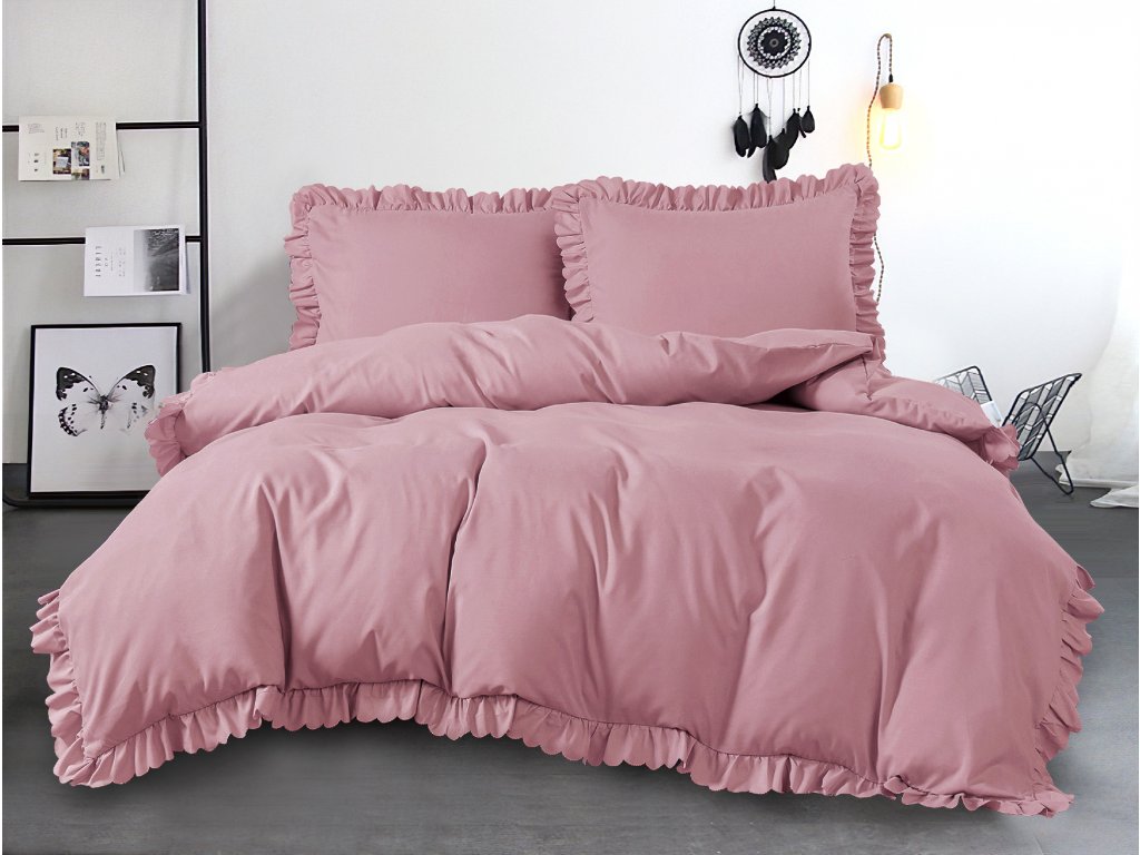 VIRGINIA rózsaszín fodros mikroszálas ágyneműhuzat