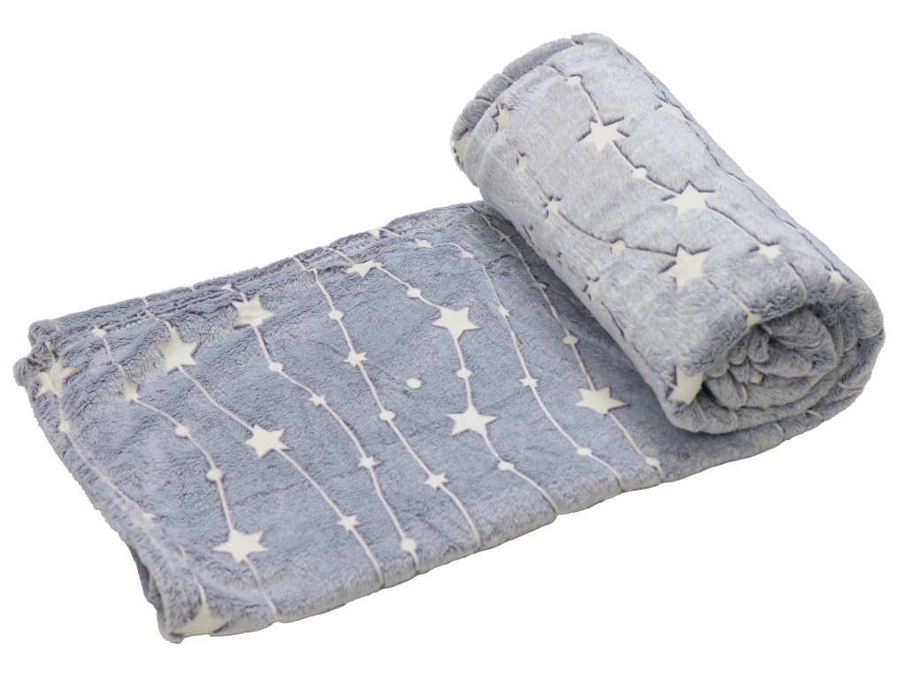 CSILLAGOK ÉS PONTOK szürke világító mikroflanel takaró 150x200 cm
