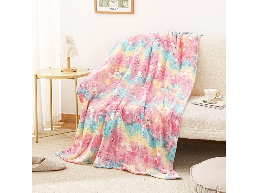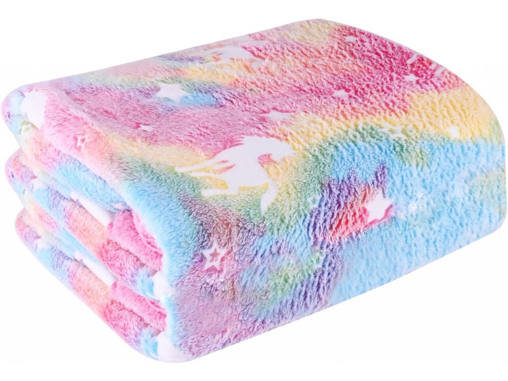 HORSE AND STARS rózsaszín világító mikroflanel takaró 150x200 cm