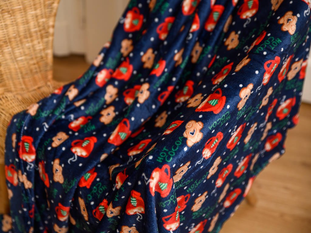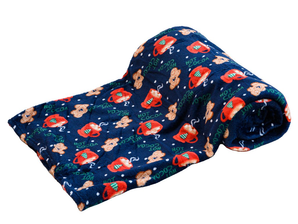 HOT COCOA kék karácsonyi mikroplüss pléd 150x200 cm