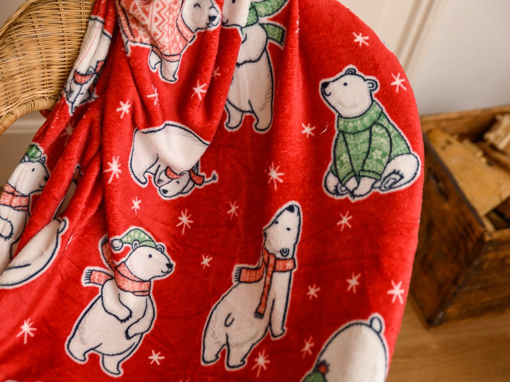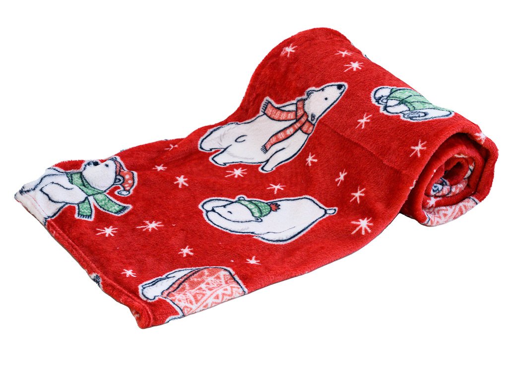 JEGESMEDVE piros karácsonyi mikroplüss takaró 150x200 cm