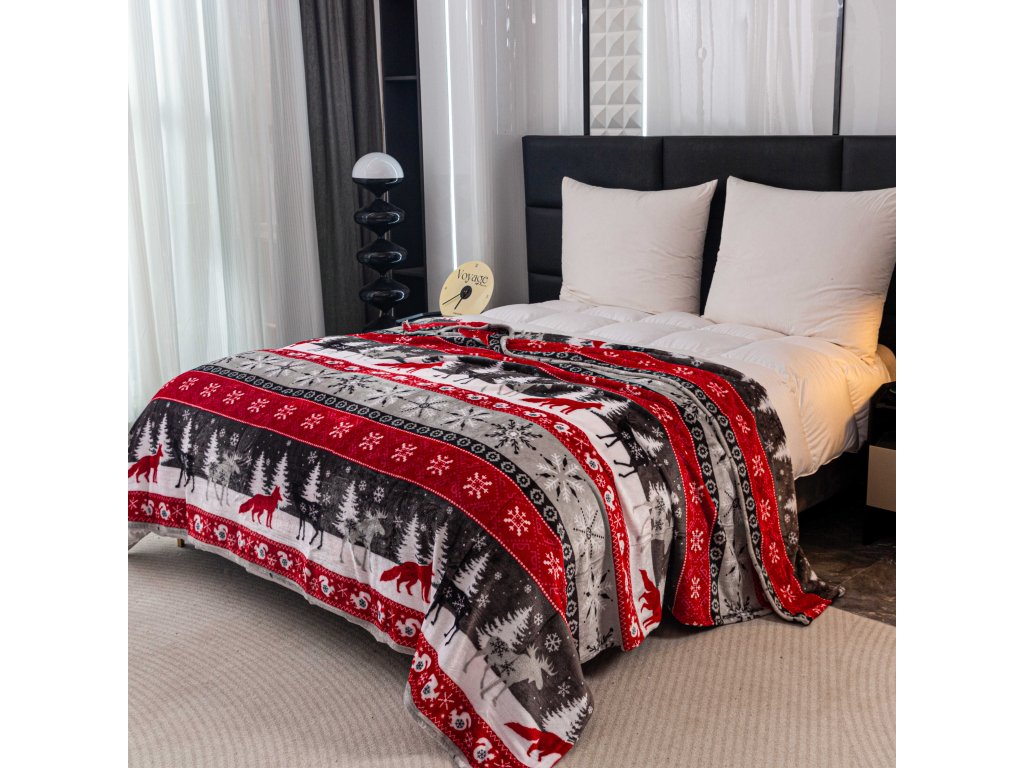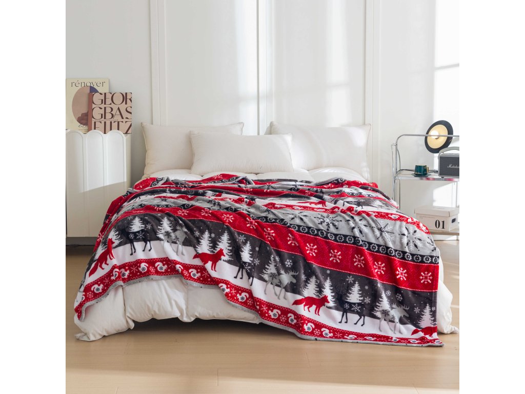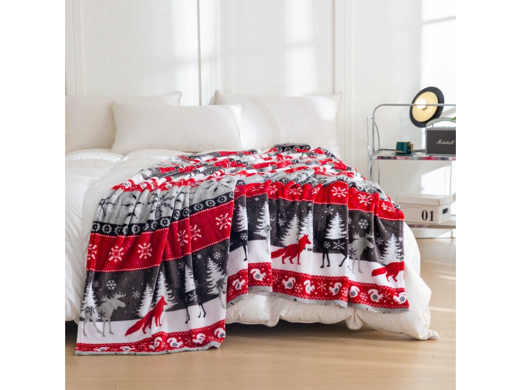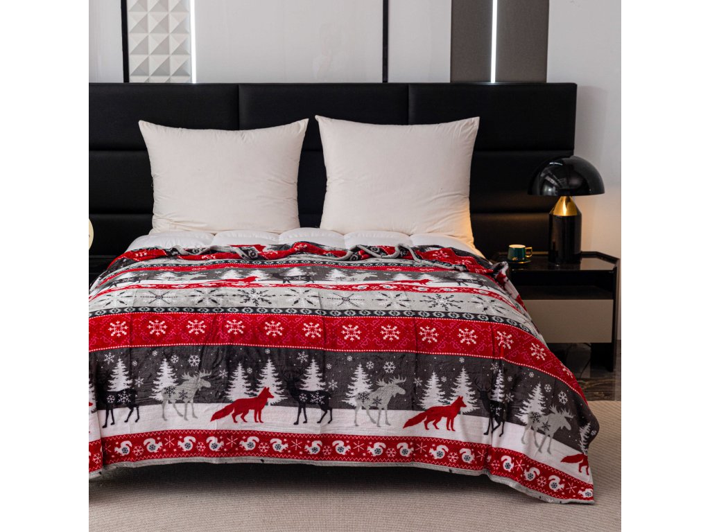 Karácsonyi mikroplüss pléd SNOWY FOREST szürke