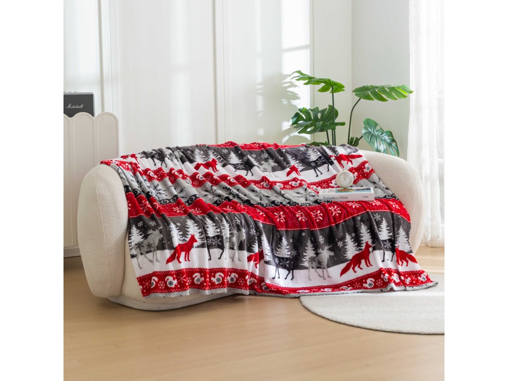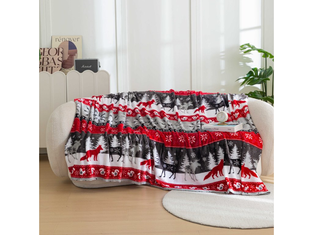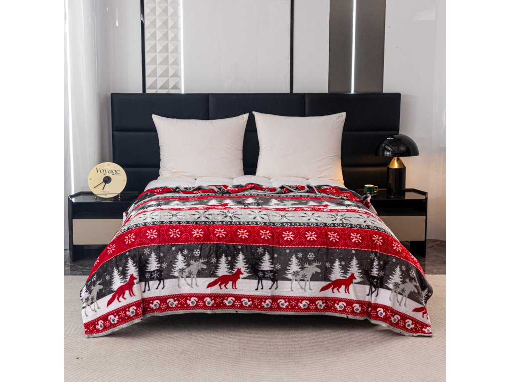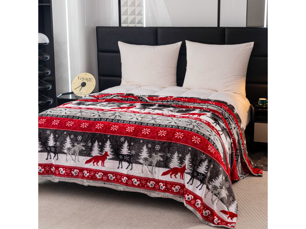 Karácsonyi mikroplüss pléd SNOWY FOREST szürke