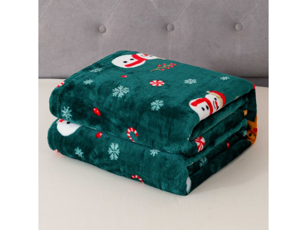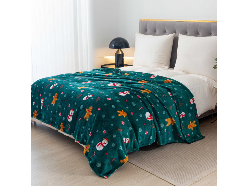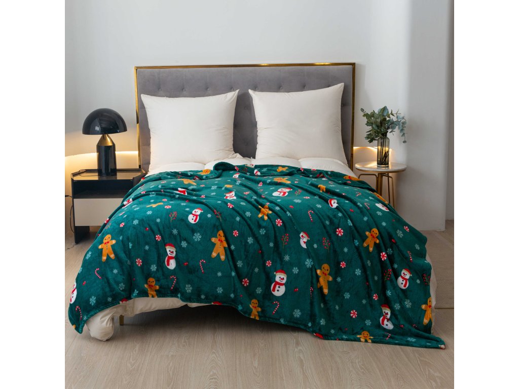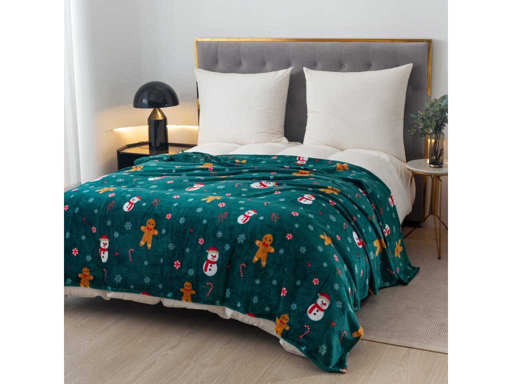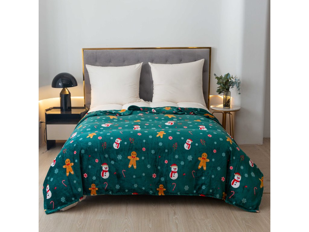SNOWMAN AND GINGERBREAD zöld karácsonyi mikroplüss pléd