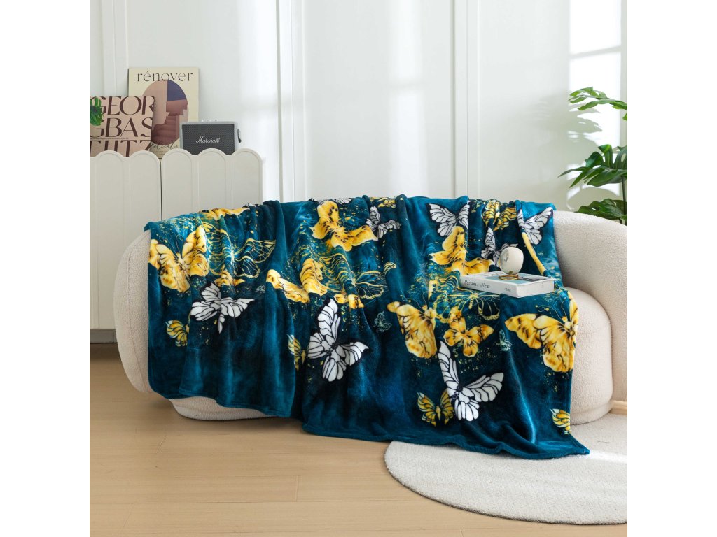 Mikroplüss takaró ARANY ÉS FEHÉR PILLANGÓ, sötétzöld
