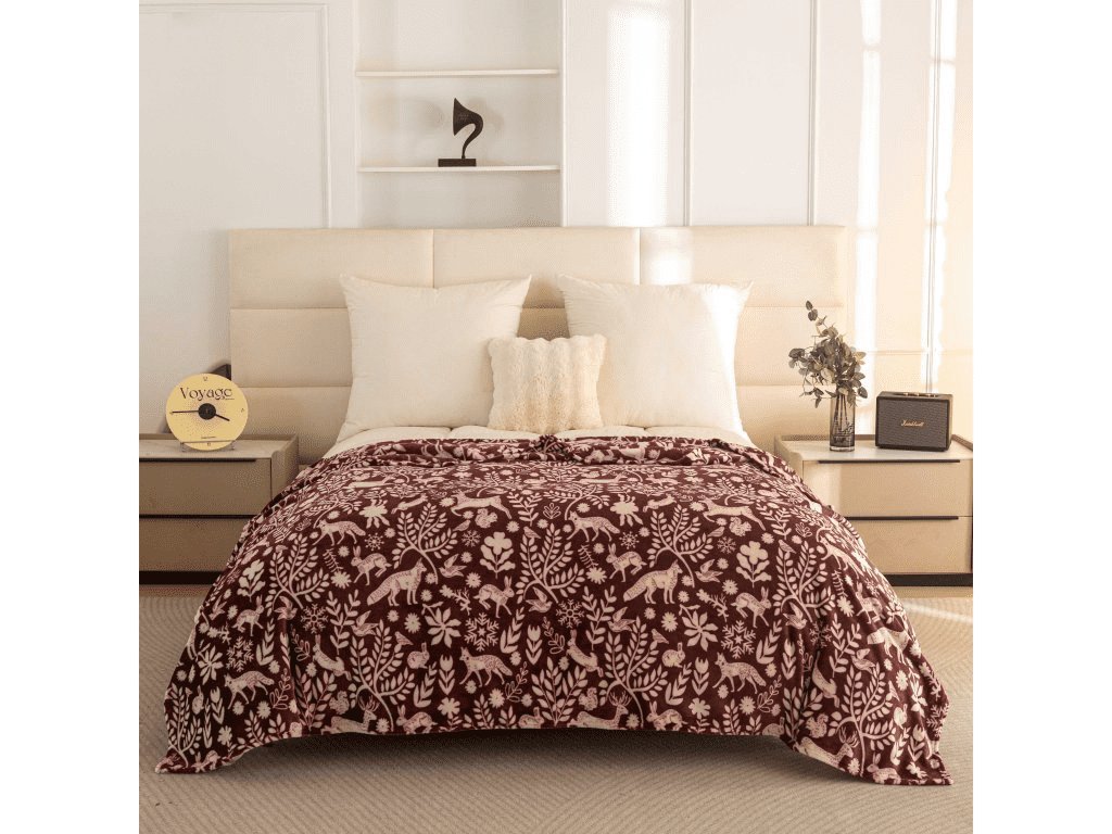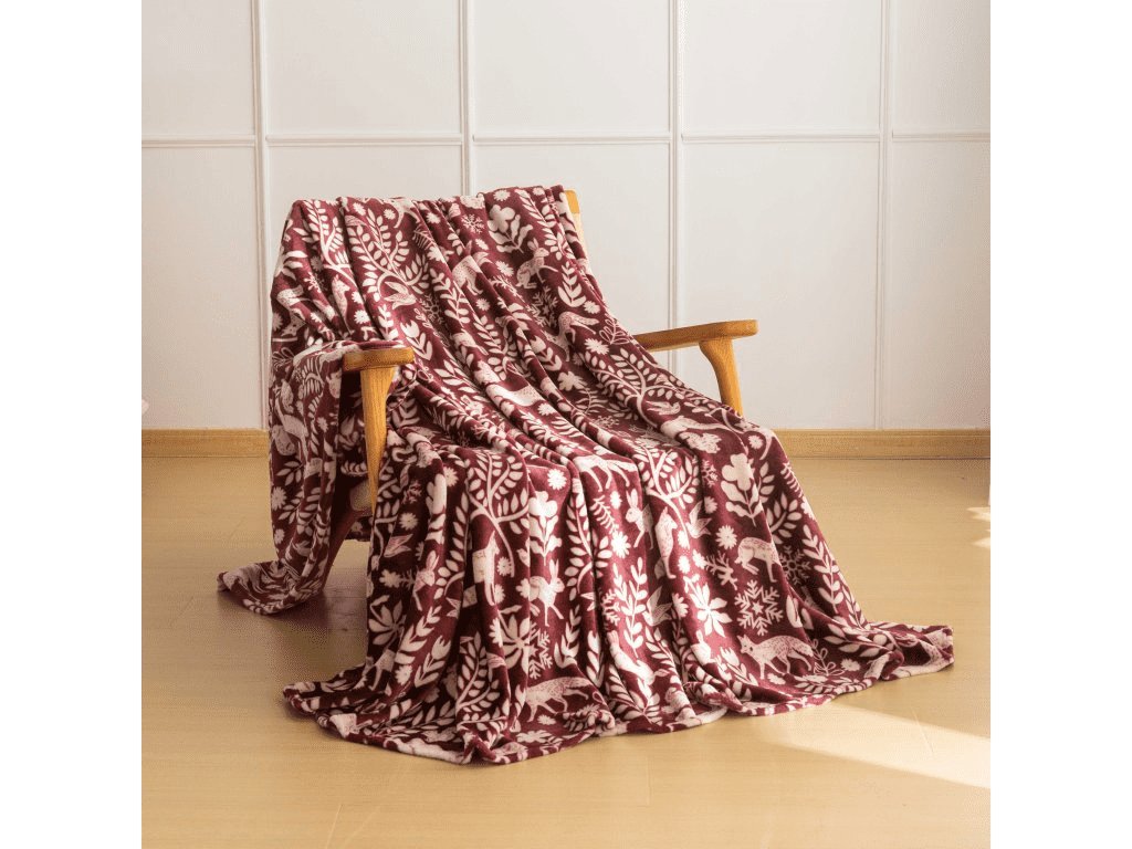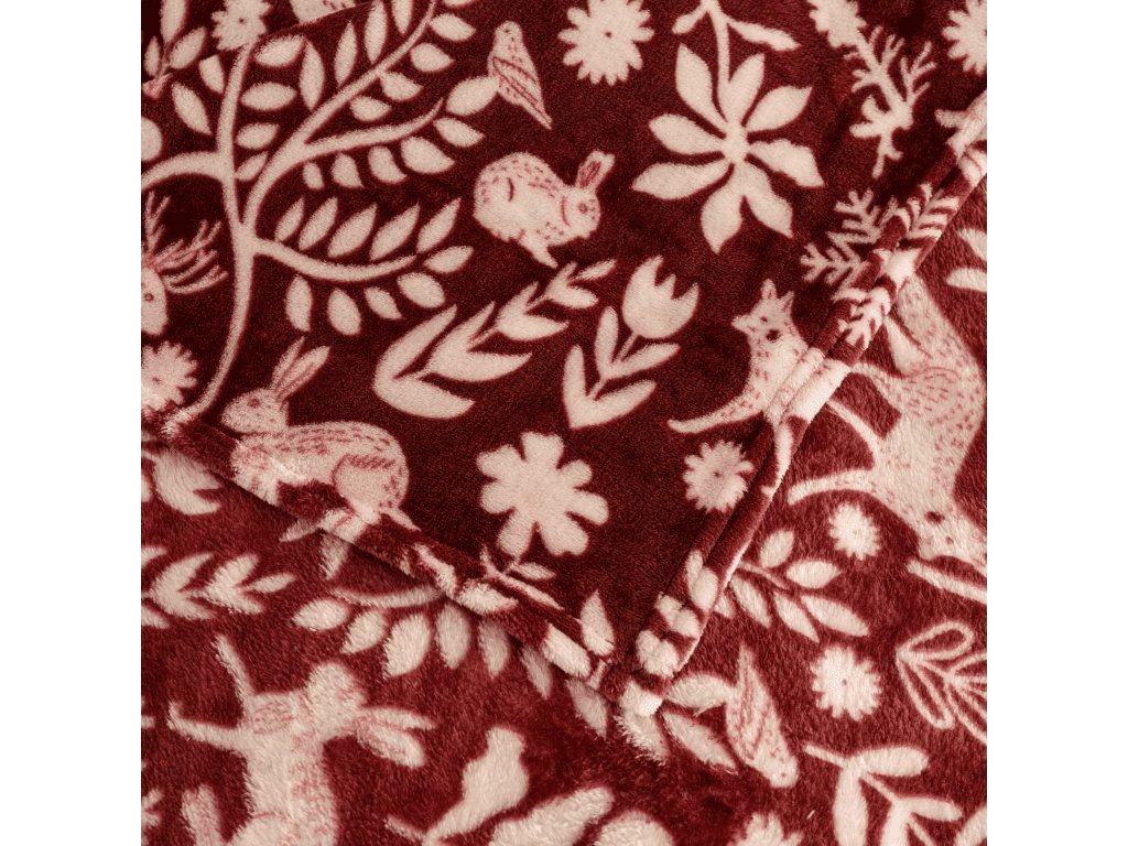 Mikroplüss takaró FOREST ANIMALS, bordó