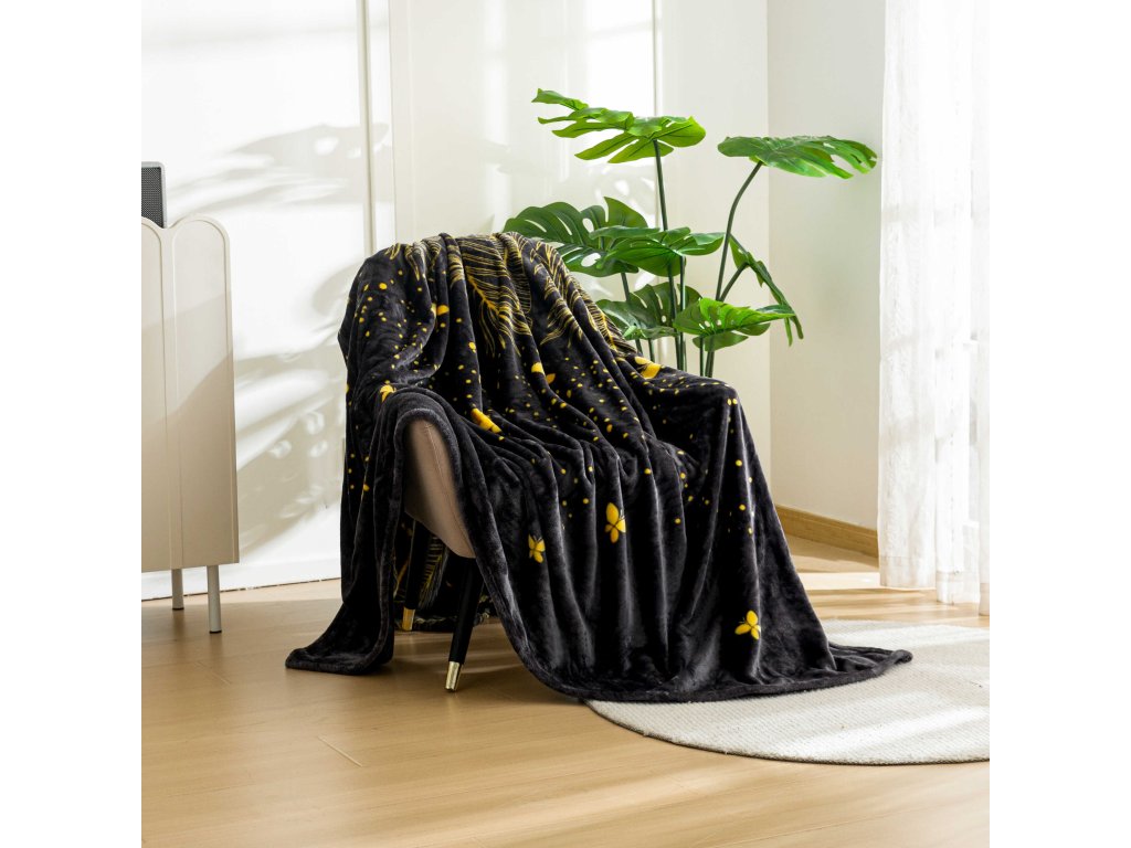 Sötétkék karácsonyi mikroplüss takaró GOLDEN DEER