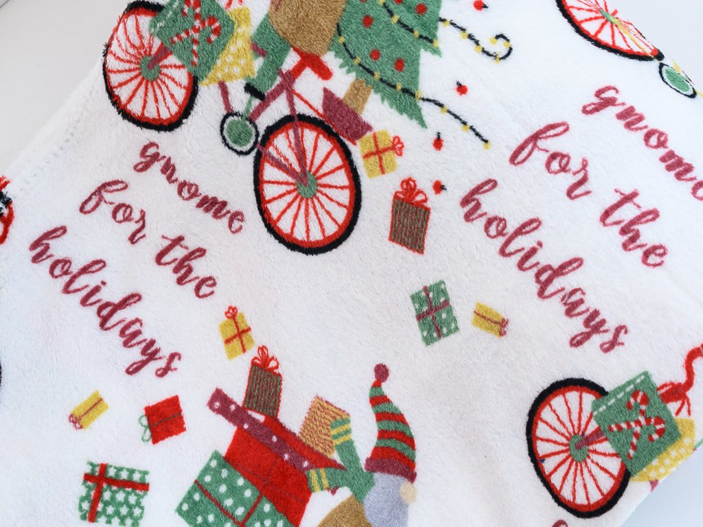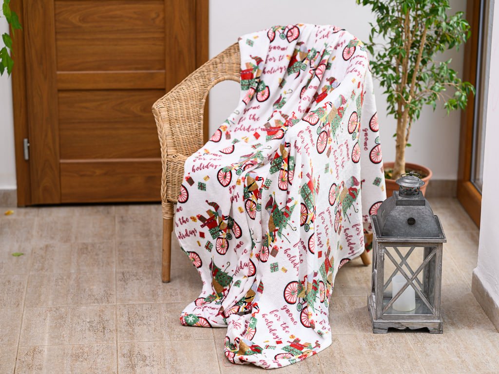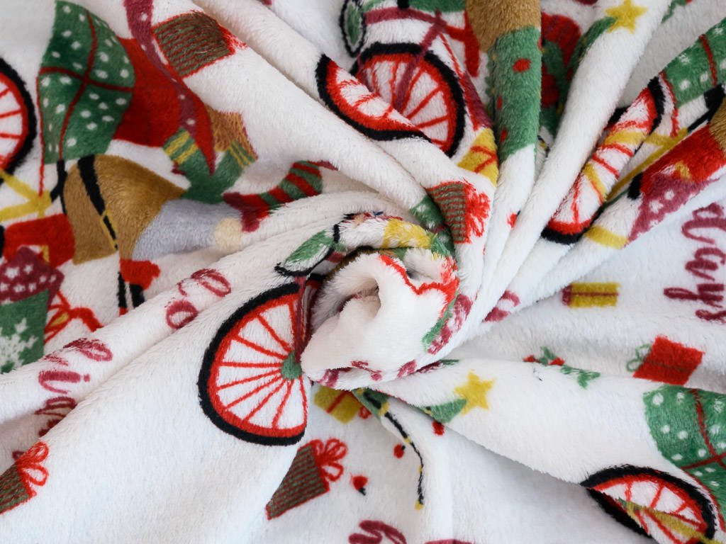 MIKULÁS KERÉKPÁRON fehér karácsonyi mikroplüss takaró 150x200 cm