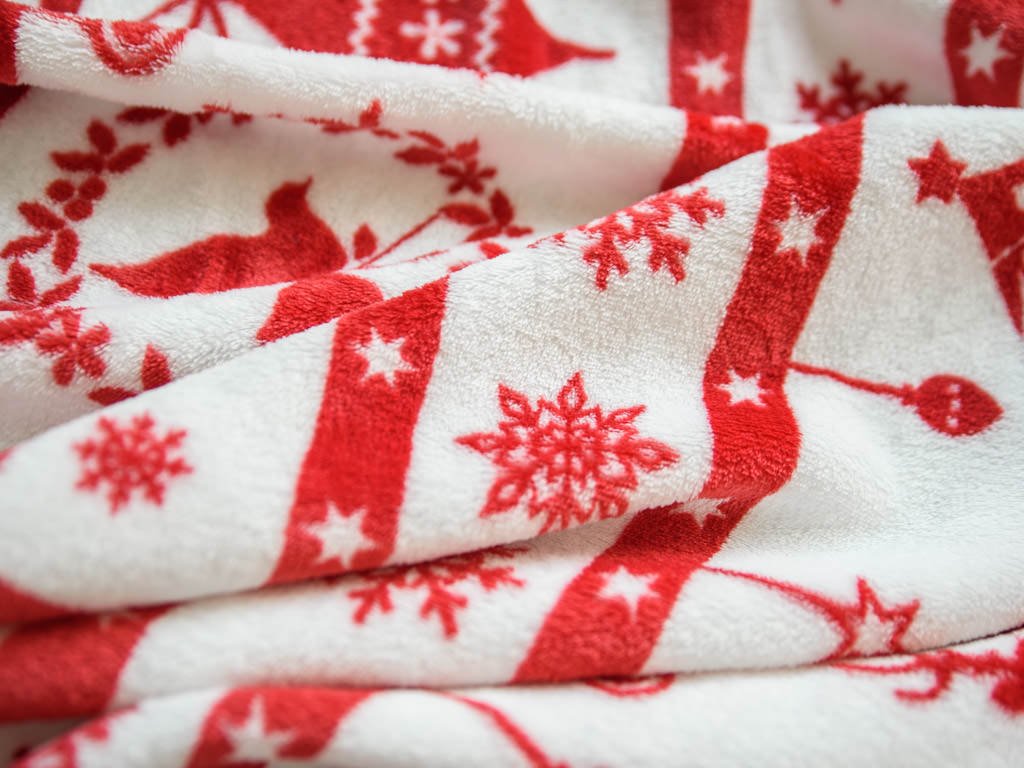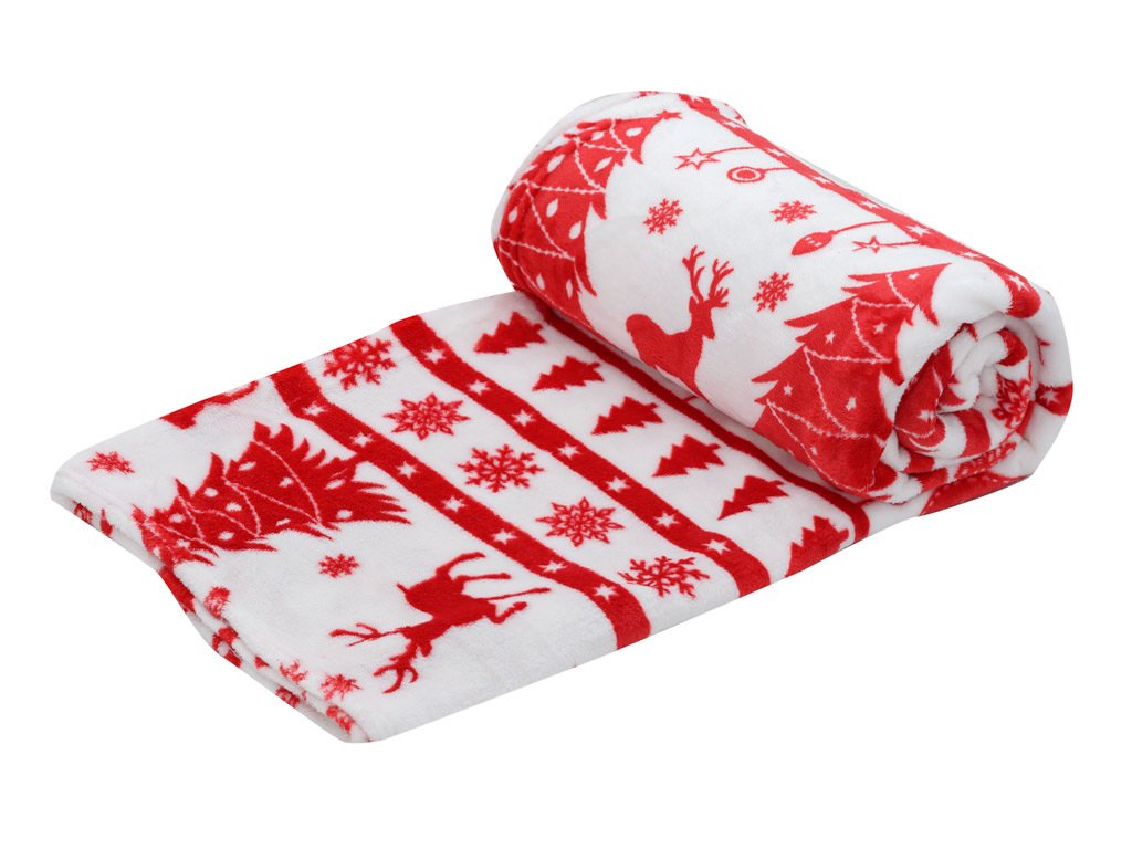 Piros-fehér karácsonyi mikroplüss takaró, 150x200 cm