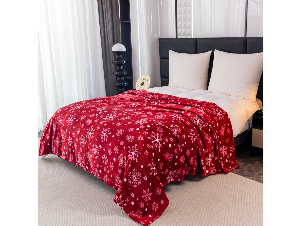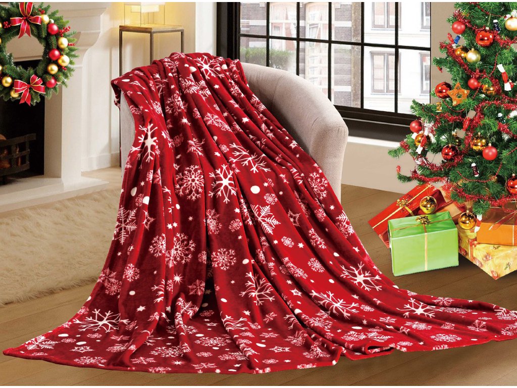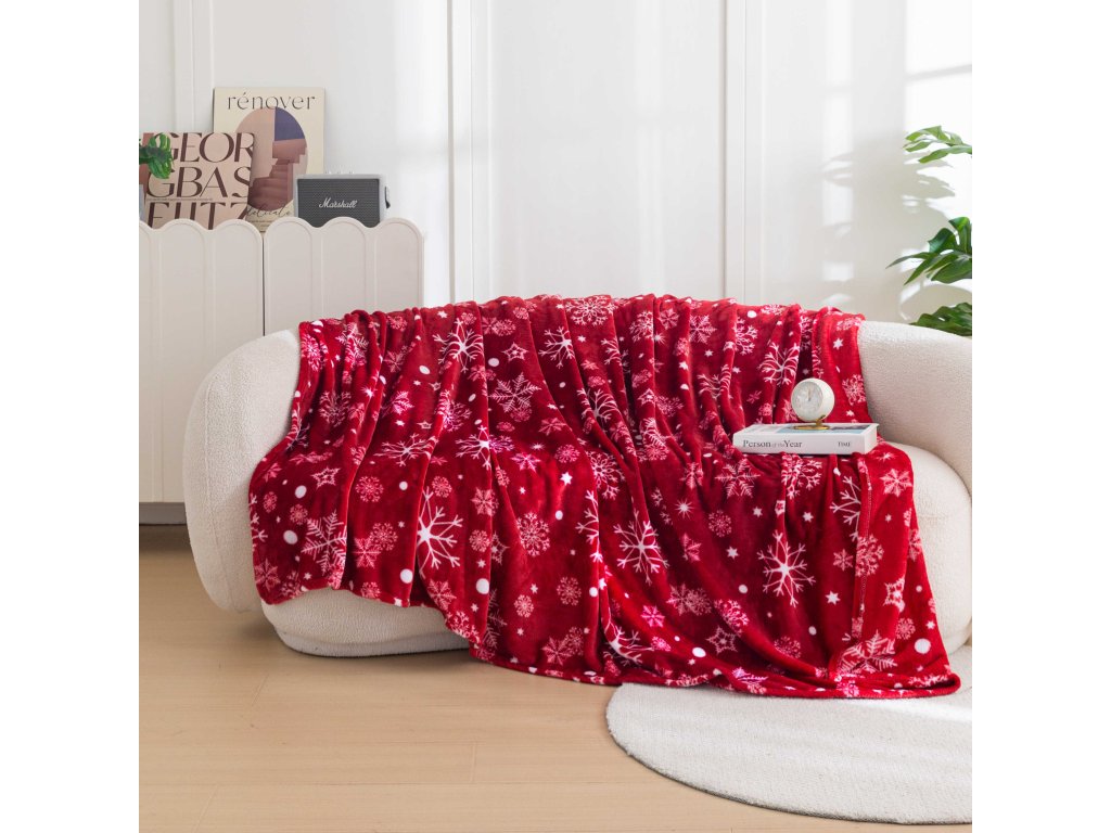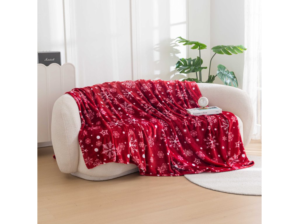 Piros karácsonyi mikroplüss pléd SNOWFALL