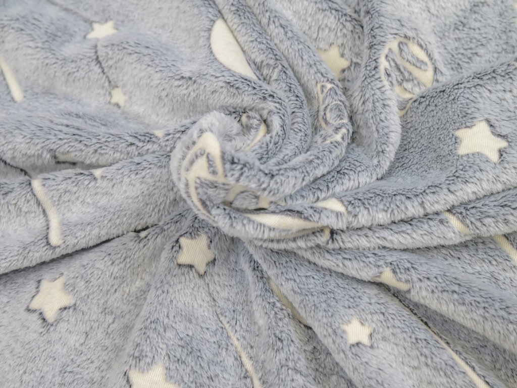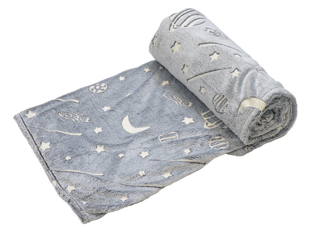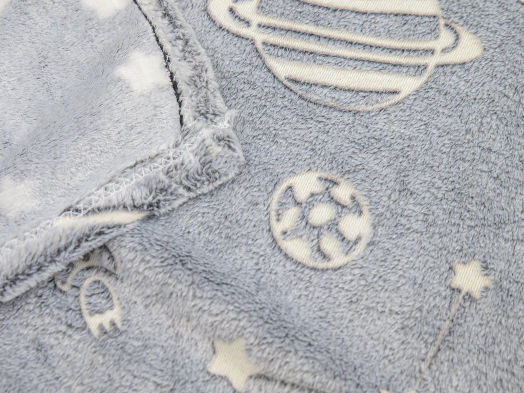 PLANETS AND ROCKET szürke világító mikroflanel takaró 150x200 cm