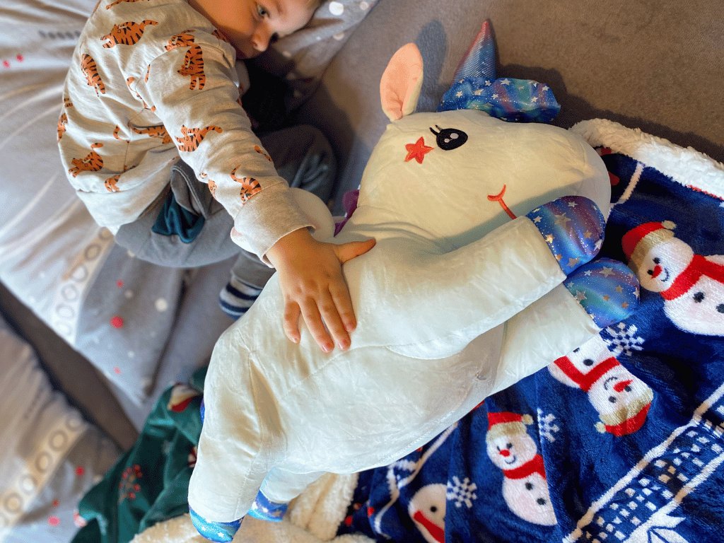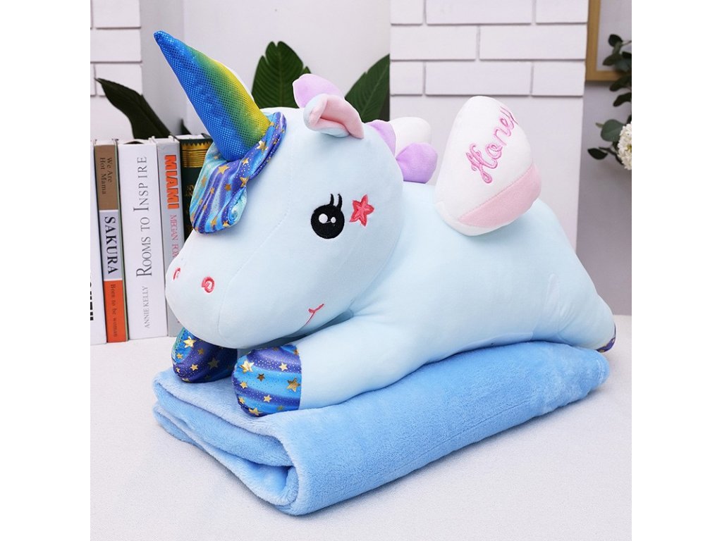 Plüss EGYSZARVÚ kék babatakaróval belül