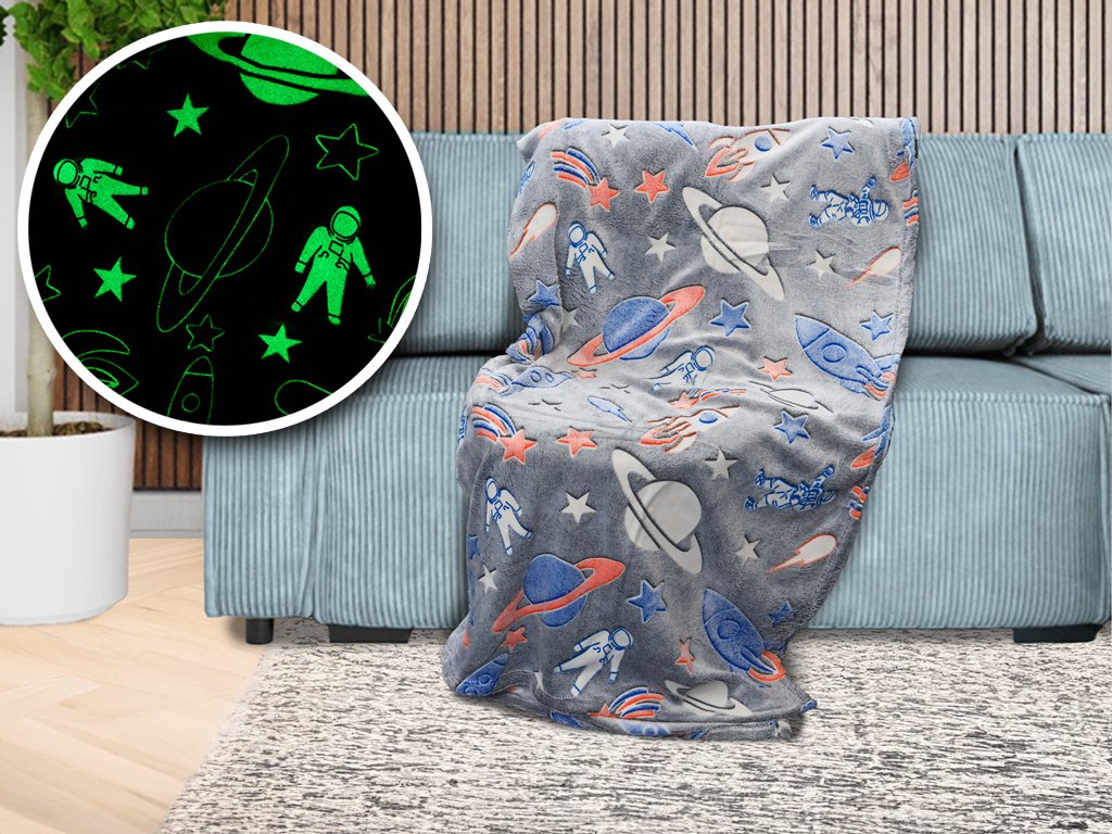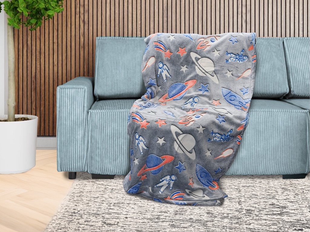 ROCKET szürke világító mikroflanel takaró 150x200 cm