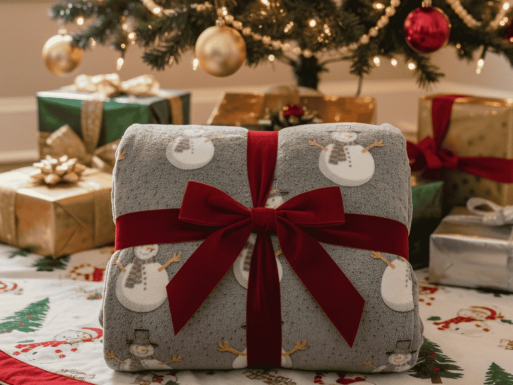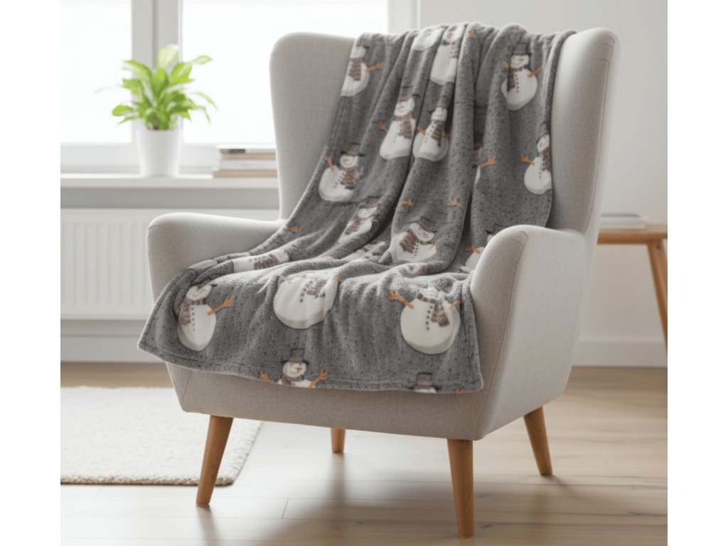 Sötétben világító karácsonyi mikroplüss pléd SNOW BUDDY, szürke