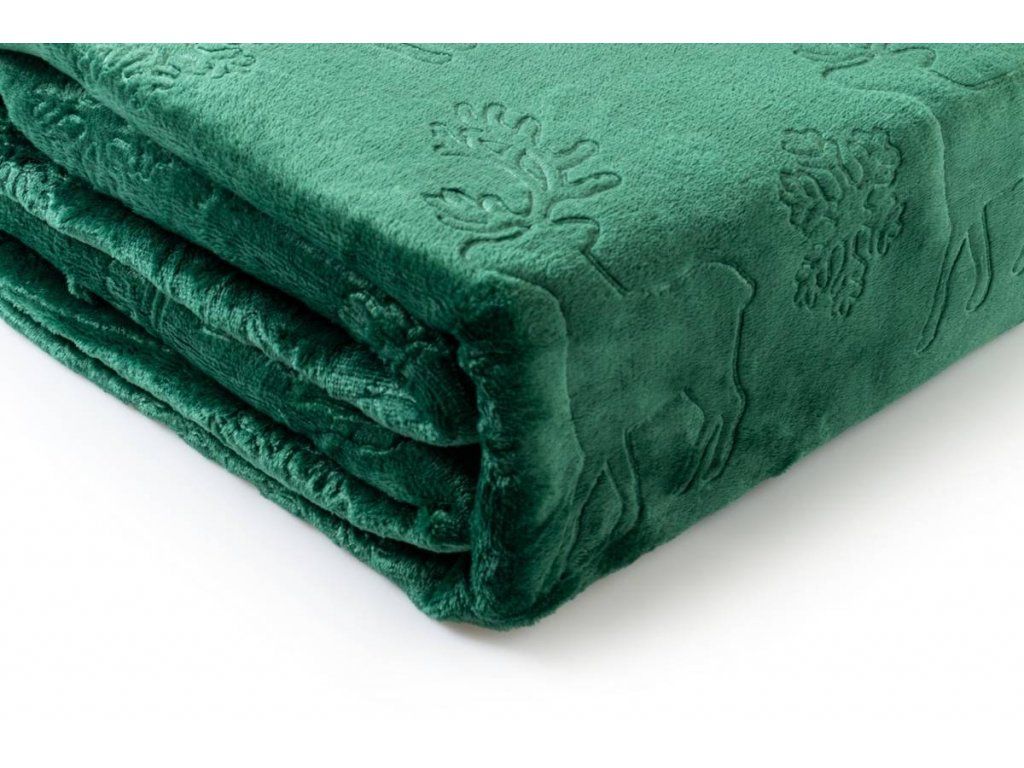 Sötétzöld karácsonyi mikroplüss pléd POLAR, 160x200 cm