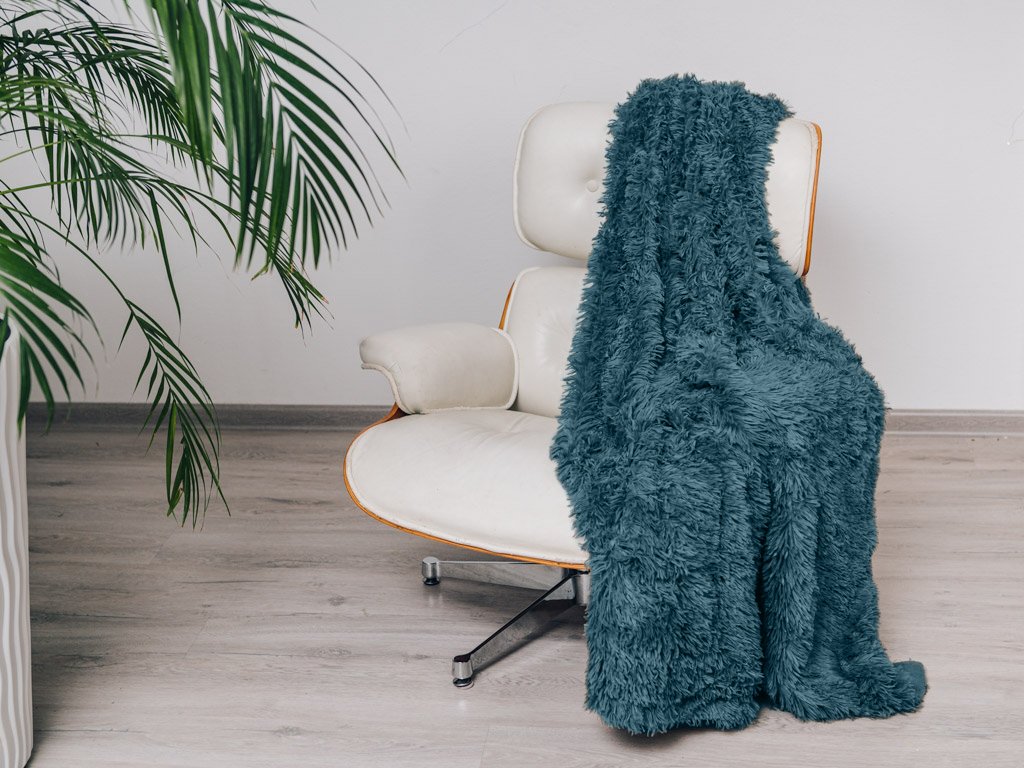 Szőrös sötét türkiz takaró 160x200 cm