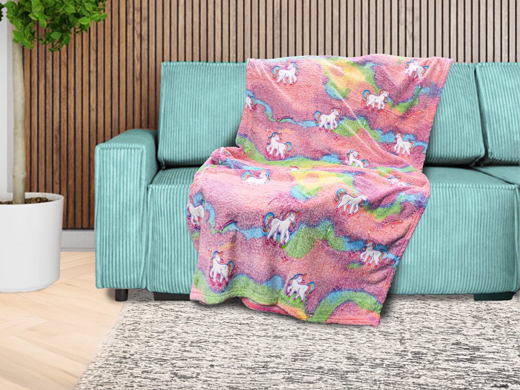 UNICORN rózsaszín világító mikroflanel takaró 150x200 cm