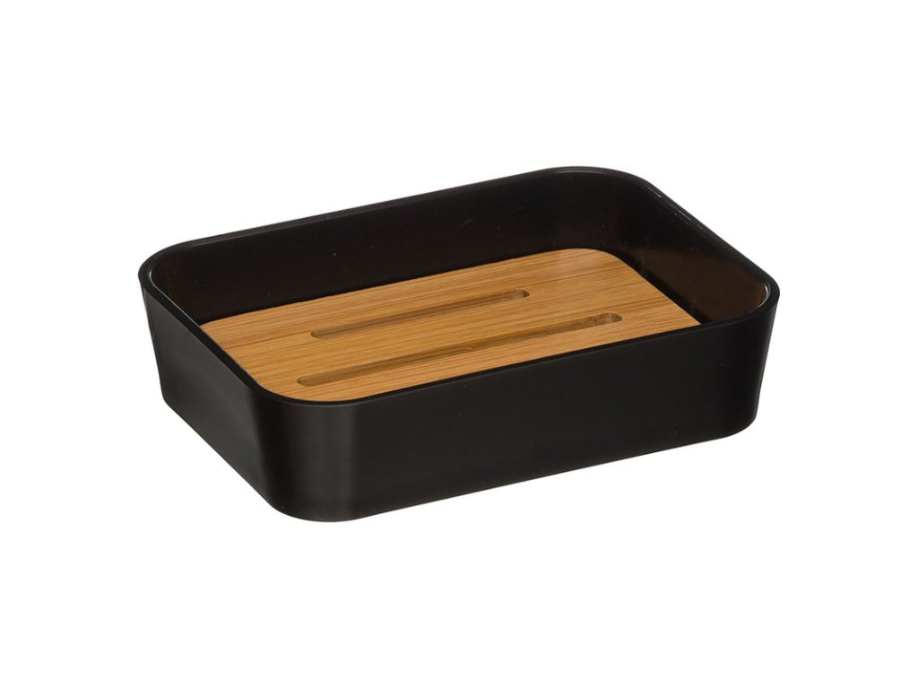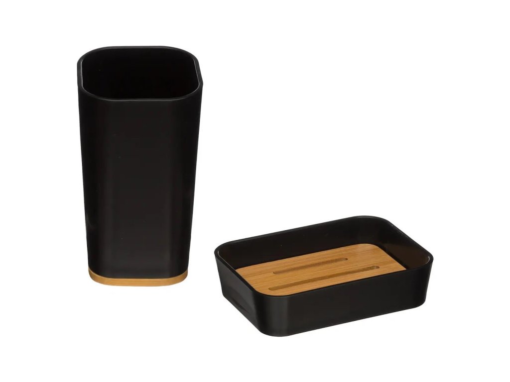 Fogkefe pohár és szappantartó tálca készlet NATUREO, fekete