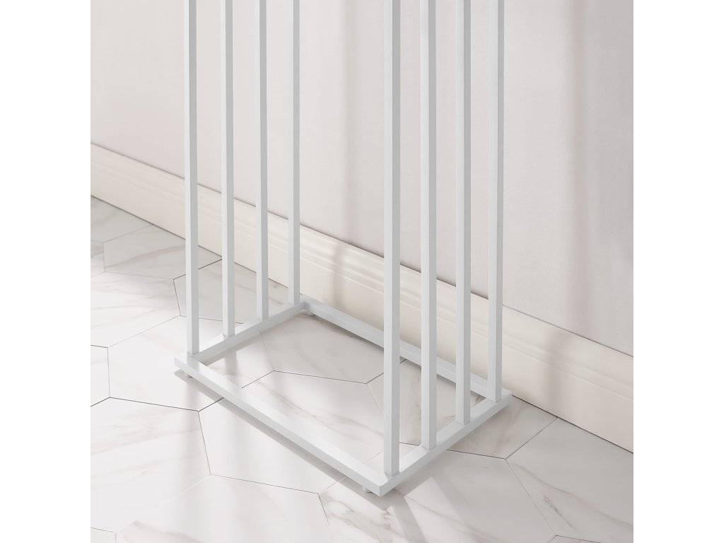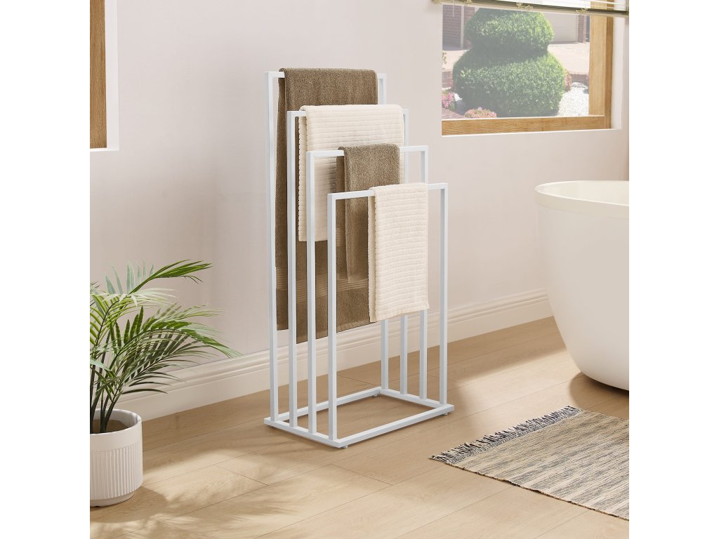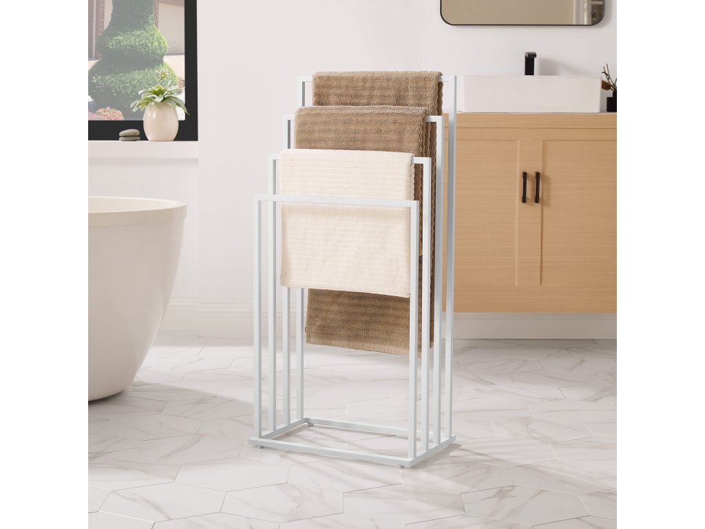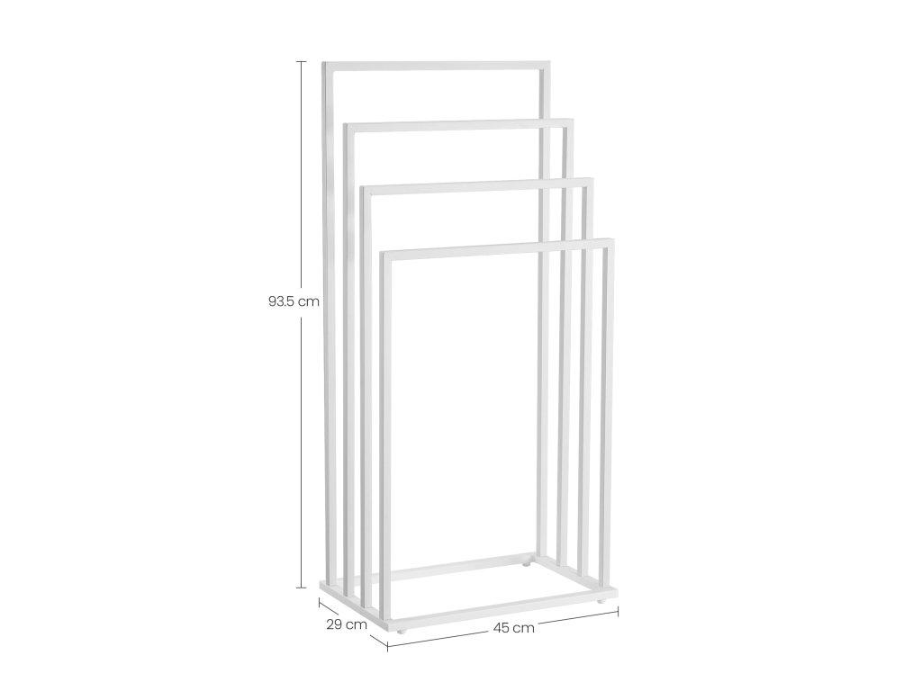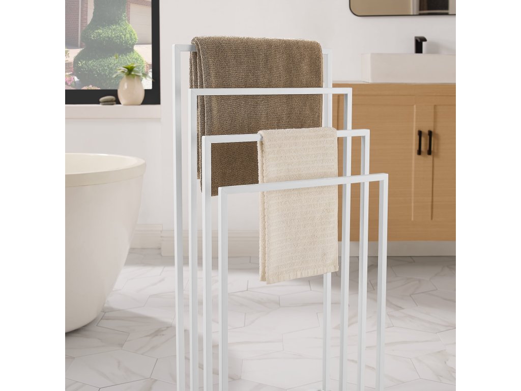A fürdőszobának nemcsak funkcionálisnak, hanem kellemes helynek is kell lennie, ahol a napját kezdi és zárja. Minimalista berendezés, mint ez az állvány, segít mindent rendezetten és áttekinthetően tartani. A maximális kényelem érdekében kombinálja az állványt puha, semleges színű törölközőkkel, és adjon hozzá illatgyertyákat vagy növényeket, amelyek feldobják a teret. Az állvány különböző magasságú karjainak használata gyors törölközőszáradást biztosít, és segít elkerülni a kellemetlen szagokat. Praktikus és esztétikus kiegészítők a kis fürdőszobát is olyan hellyé alakíthatják, ami pozitív hangulatra hangol.