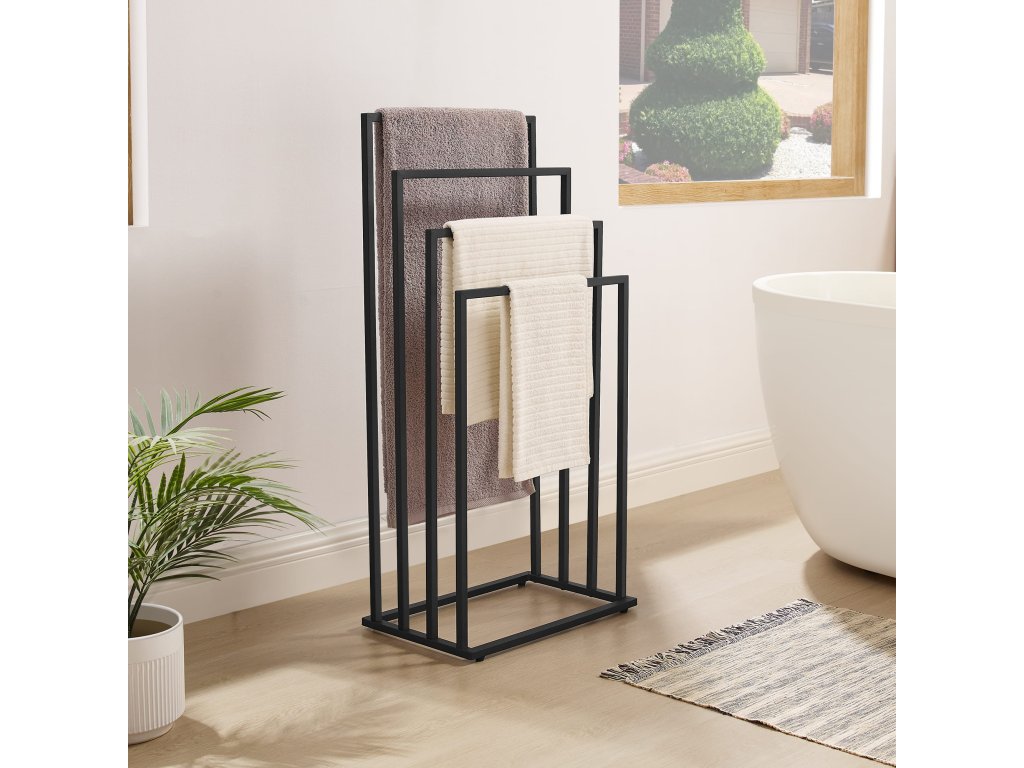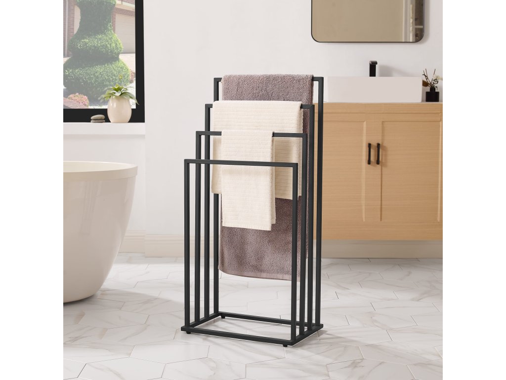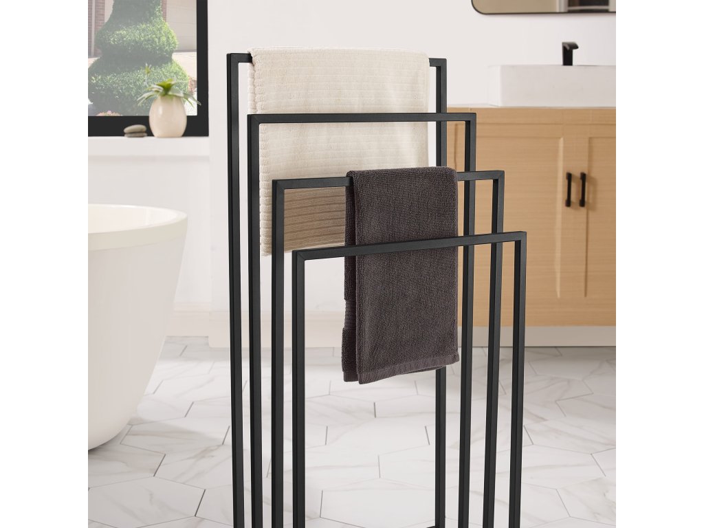A fürdőszobának nemcsak funkcionálisnak kell lennie, hanem kellemes helynek is, ahol elkezded és befejezed a napodat. Minimalista berendezés, mint például ez a törölközőtartó, segít mindent rendezetten és átláthatóan tartani. A maximális otthonosság érdekében kombináld a tartót puha, semleges színű törölközőkkel, és adj hozzá illatos gyertyákat vagy növényeket, amelyek feldobják a teret. A különböző magasságú karok használata gyors száradást biztosít a törölközőknek, segít elkerülni a kellemetlen szagokat. Praktikus és esztétikus kiegészítők kis fürdőszobát is olyan helyre alakíthatnak, amely pozitív hangulattal tölt fel.