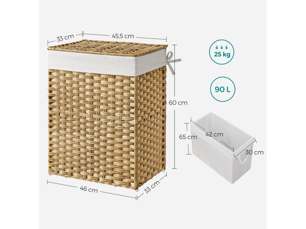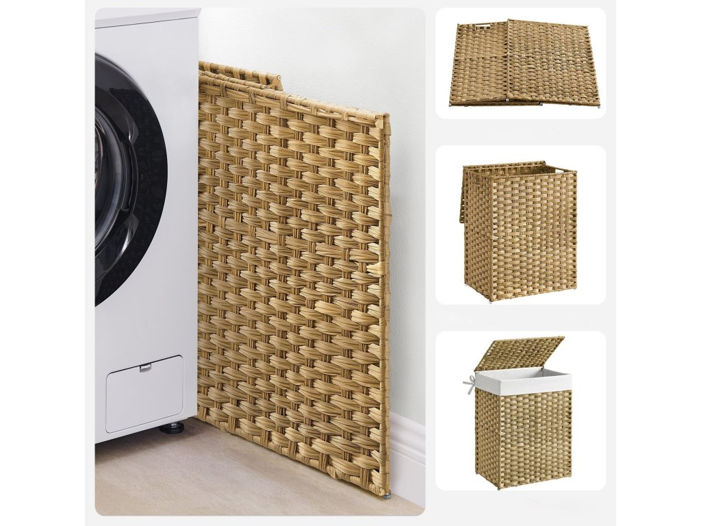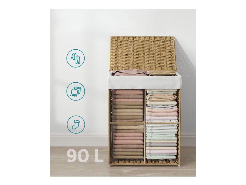 Összecsukható LINELO 90 L szennyestartó, bézs műrattan