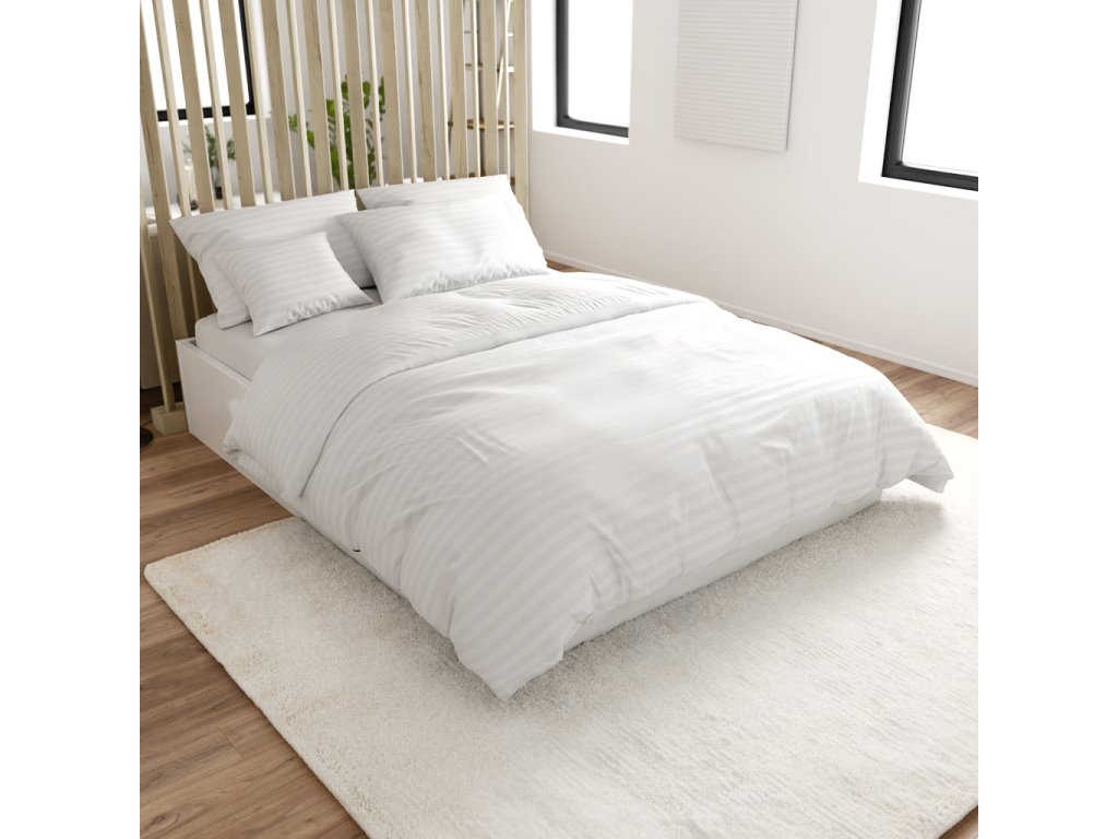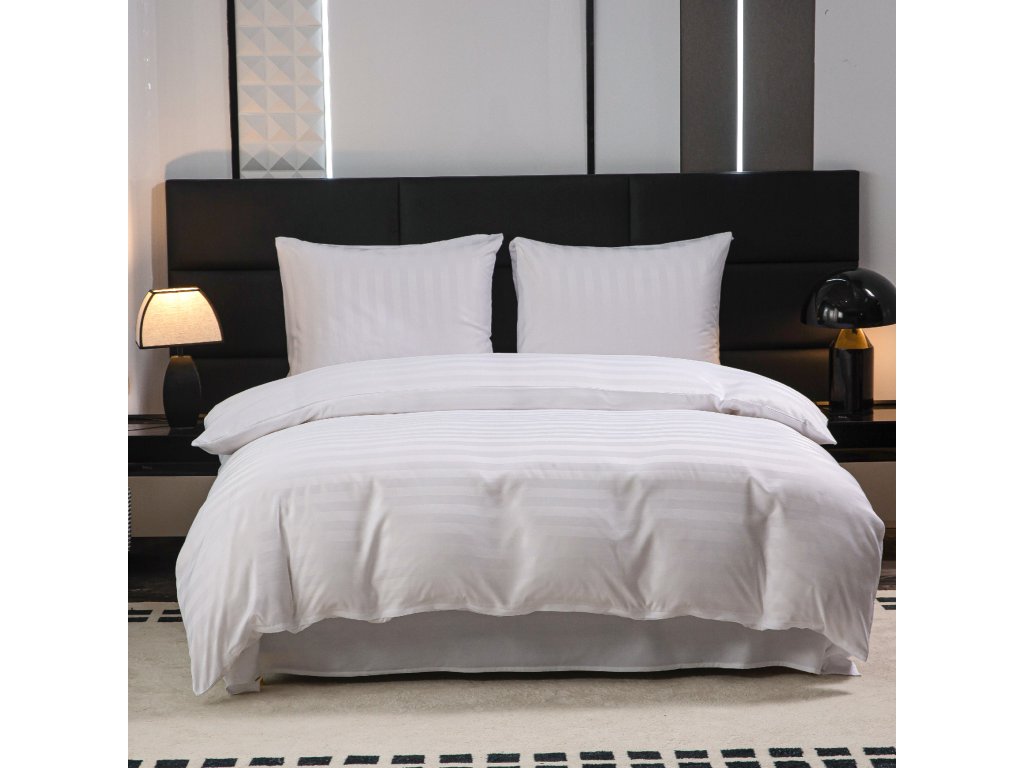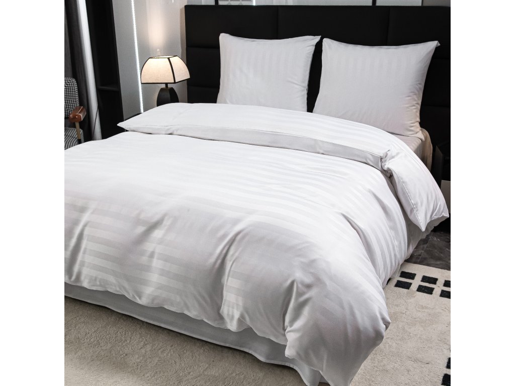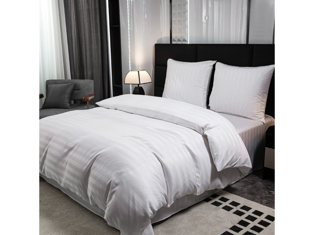 Hotel mikroszálas ágynemű JASMINE fehér - 2 cm csík, hotel zseb