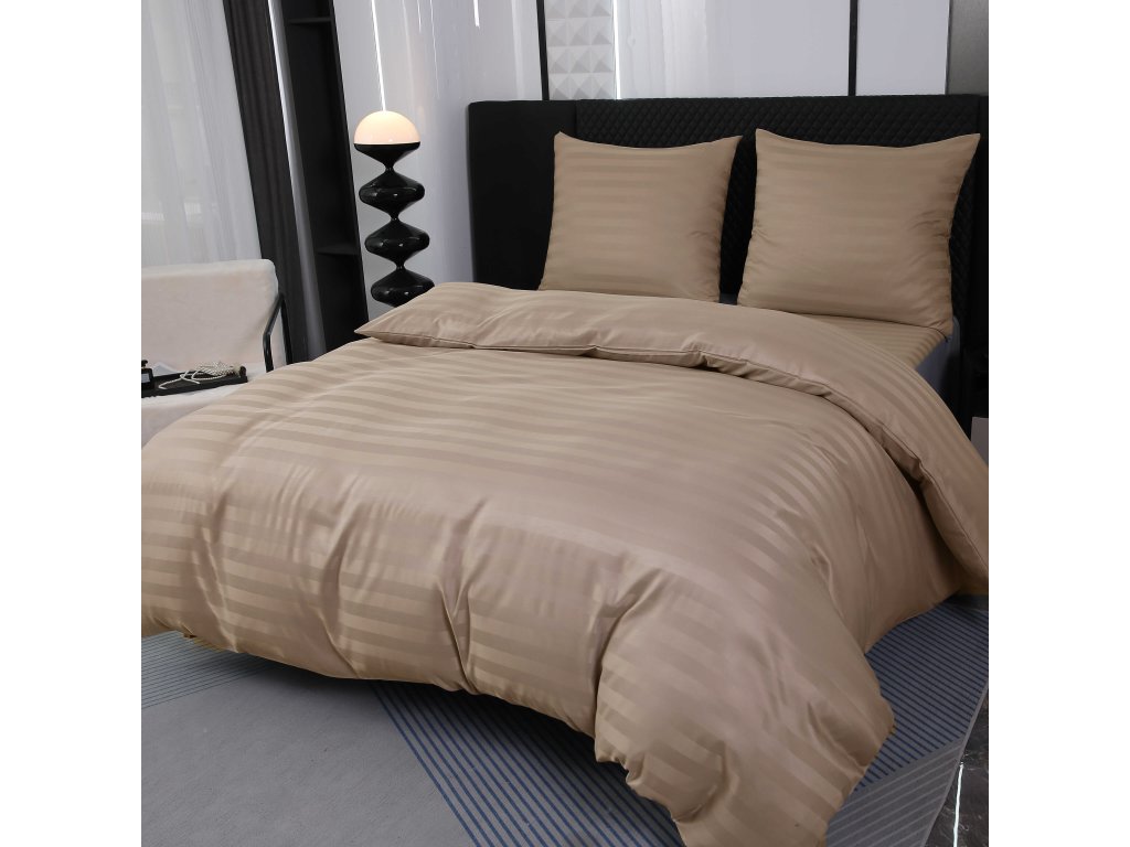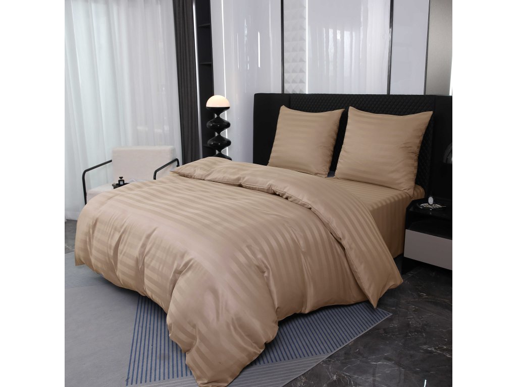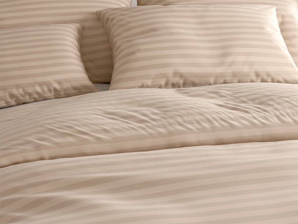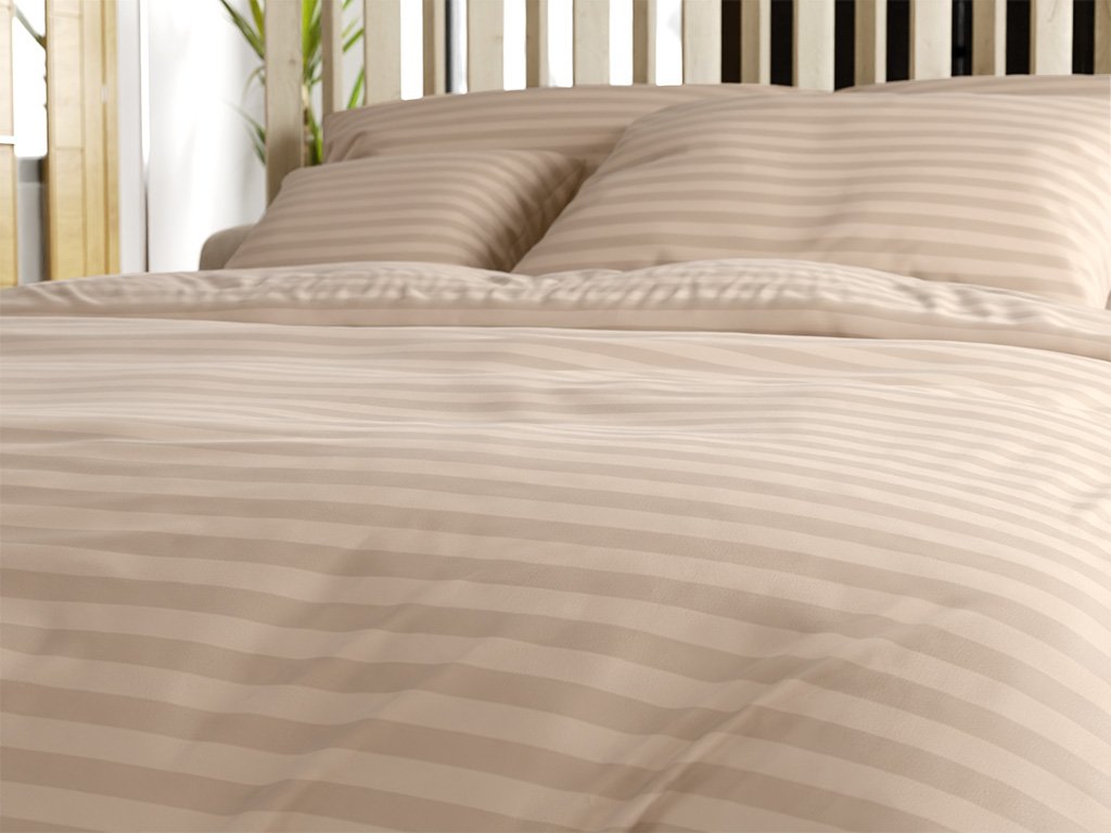 JASMINE bézs - 2 cm csíkos szállodai mikroszálas ágyneműhuzat