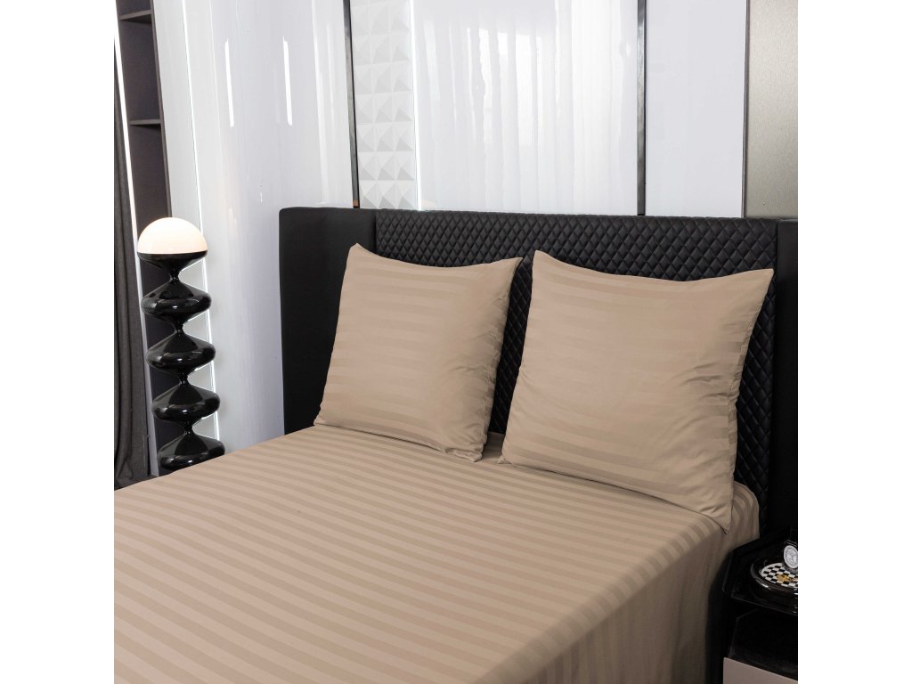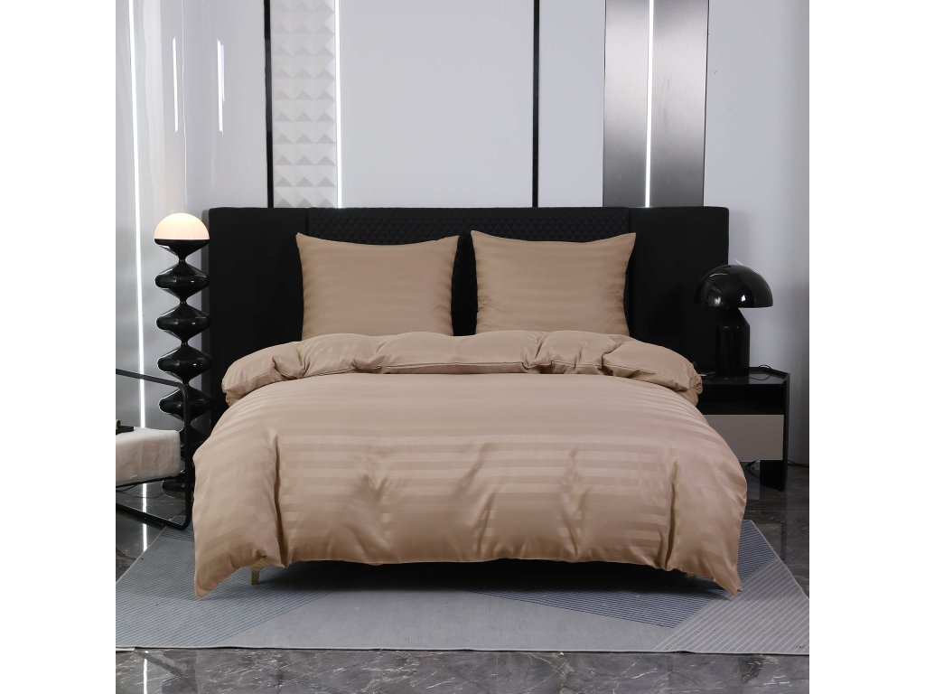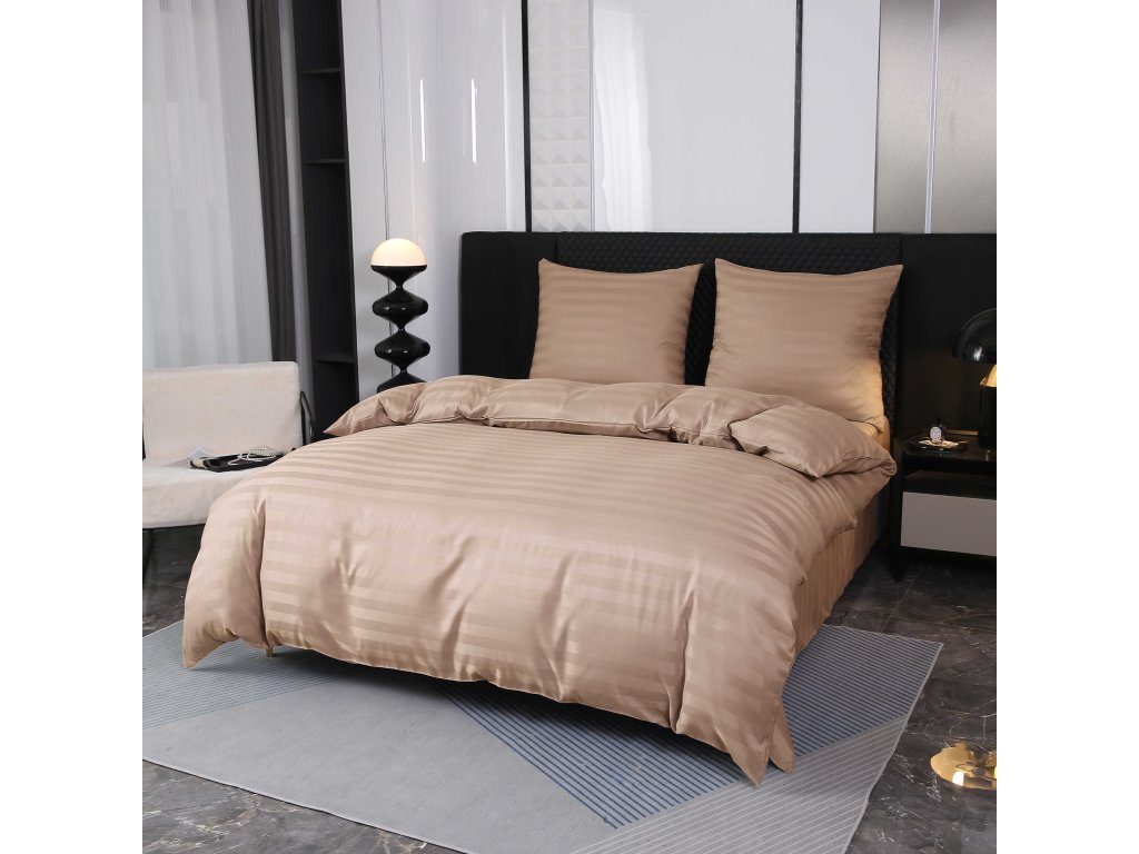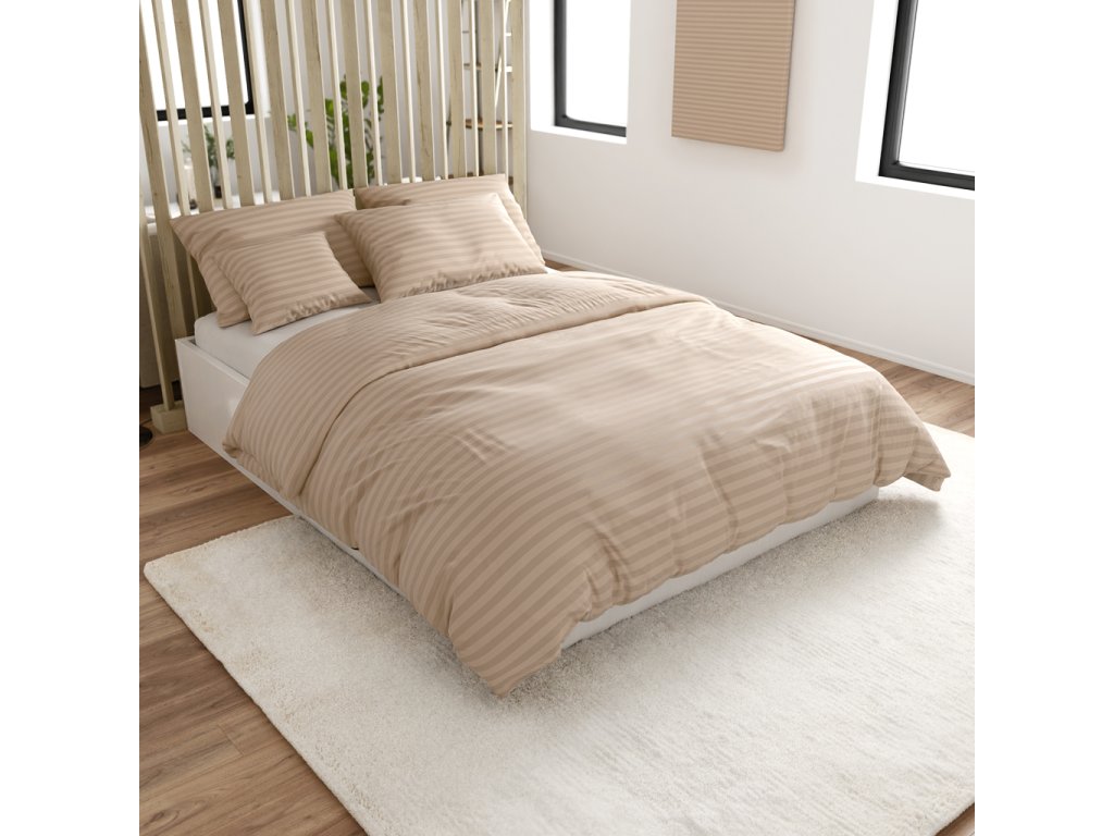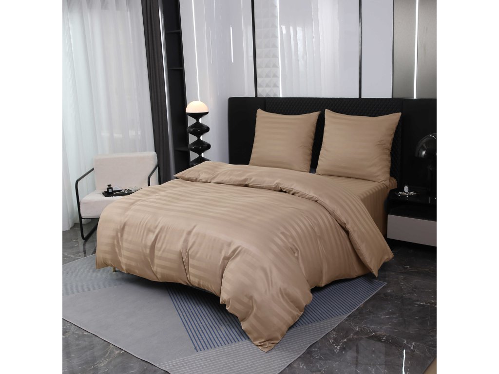 JASMINE bézs - 2 cm csíkos szállodai mikroszálas ágyneműhuzat