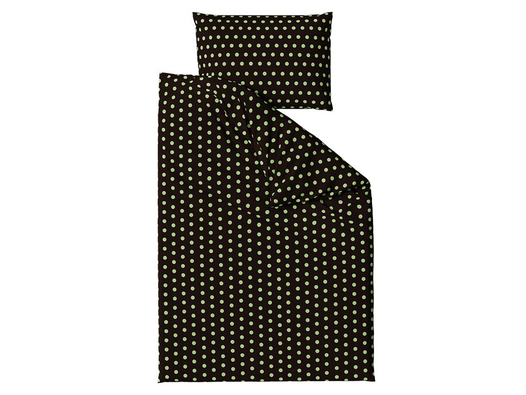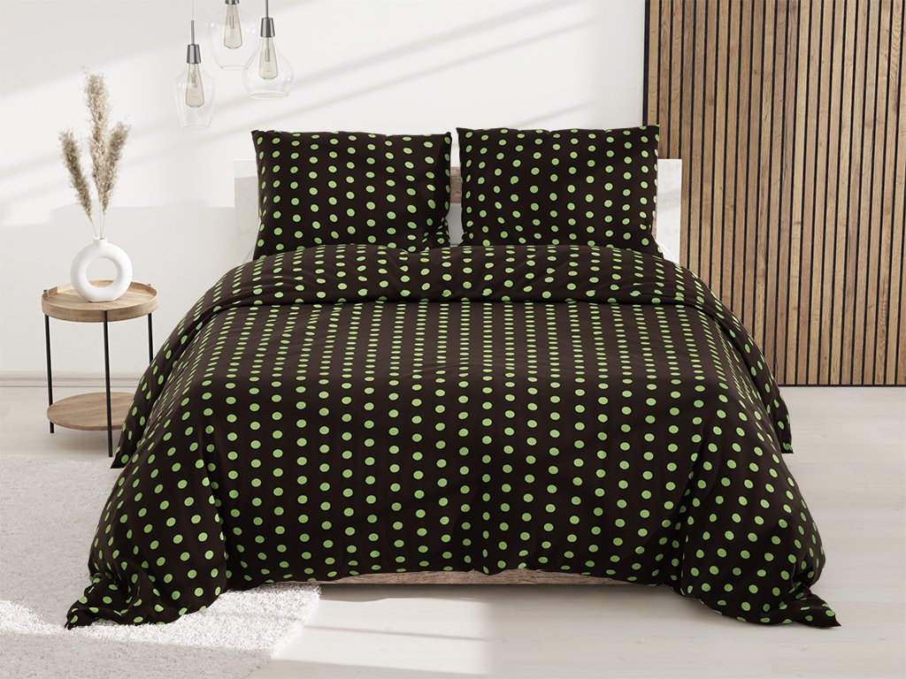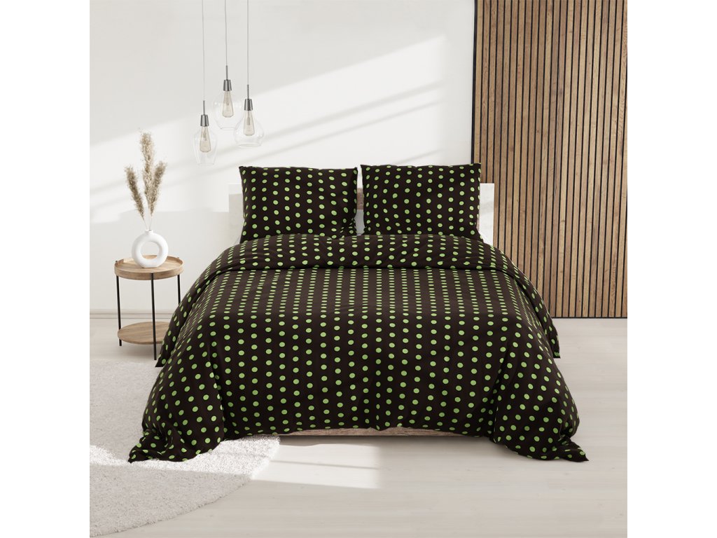 COLAM fekete pamut ágynemű zöld pöttyökkel