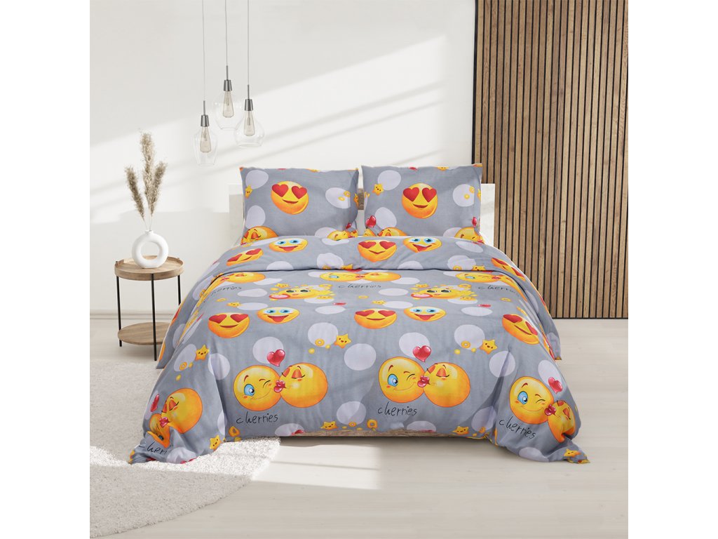 EMOJI szürke pamut ágyneműhuzat