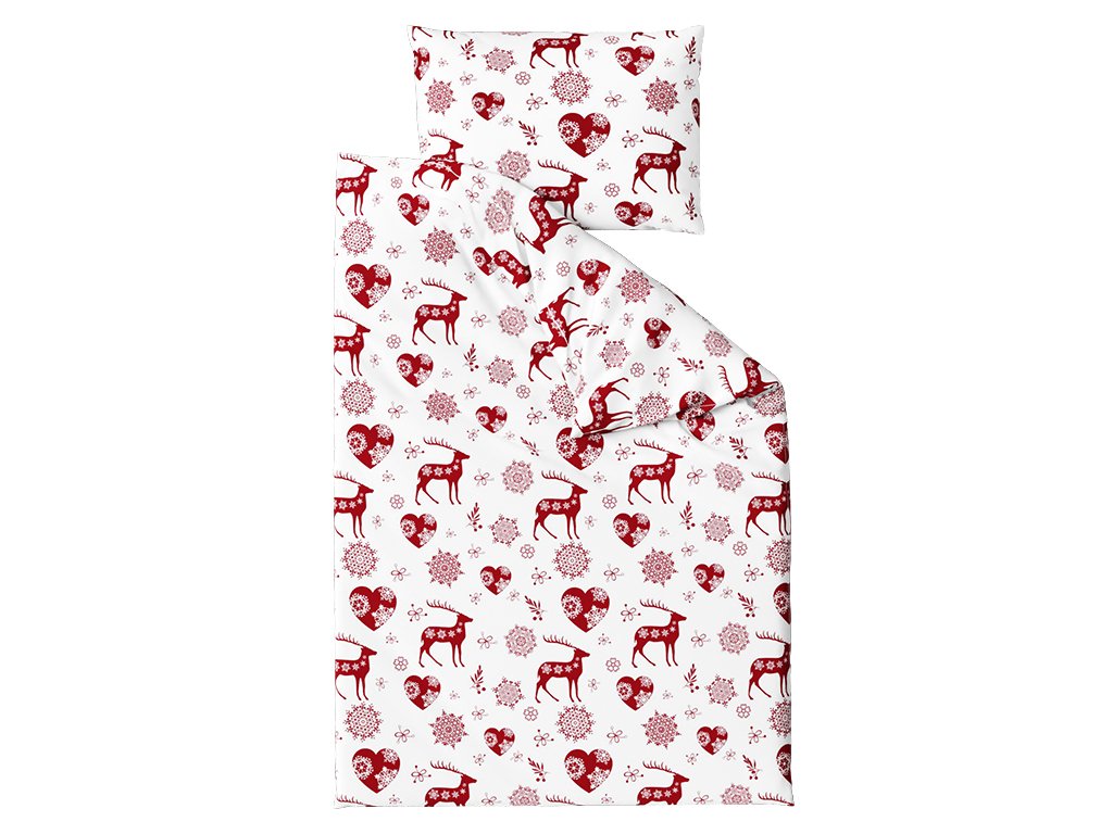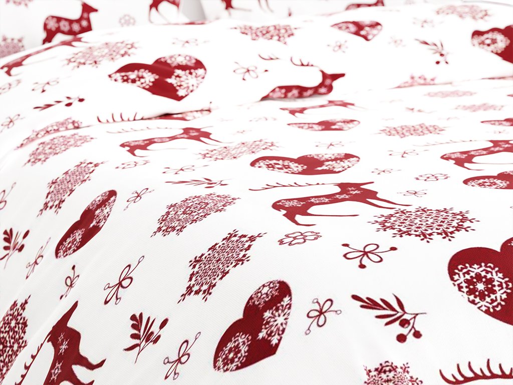 HEARTS AND REINDEER fehér pamut ágyneműhuzat