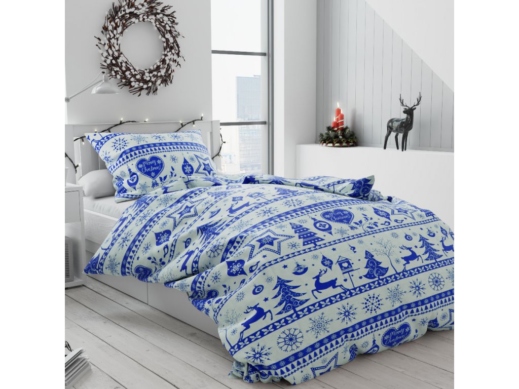Karácsonyi kék pamut ágyneműhuzat