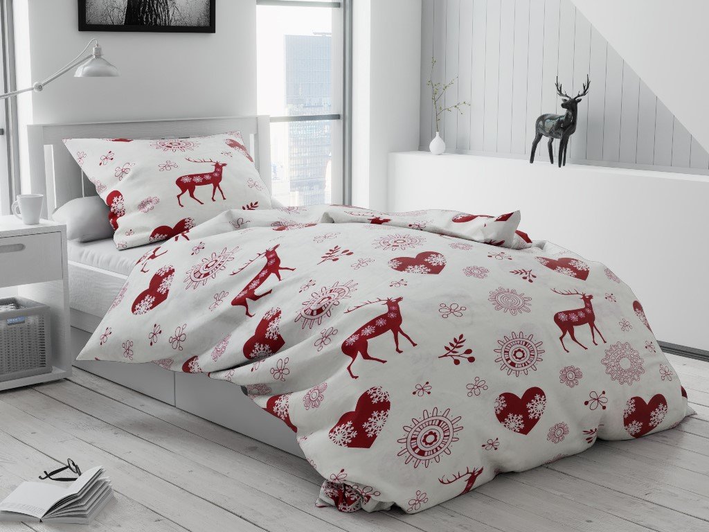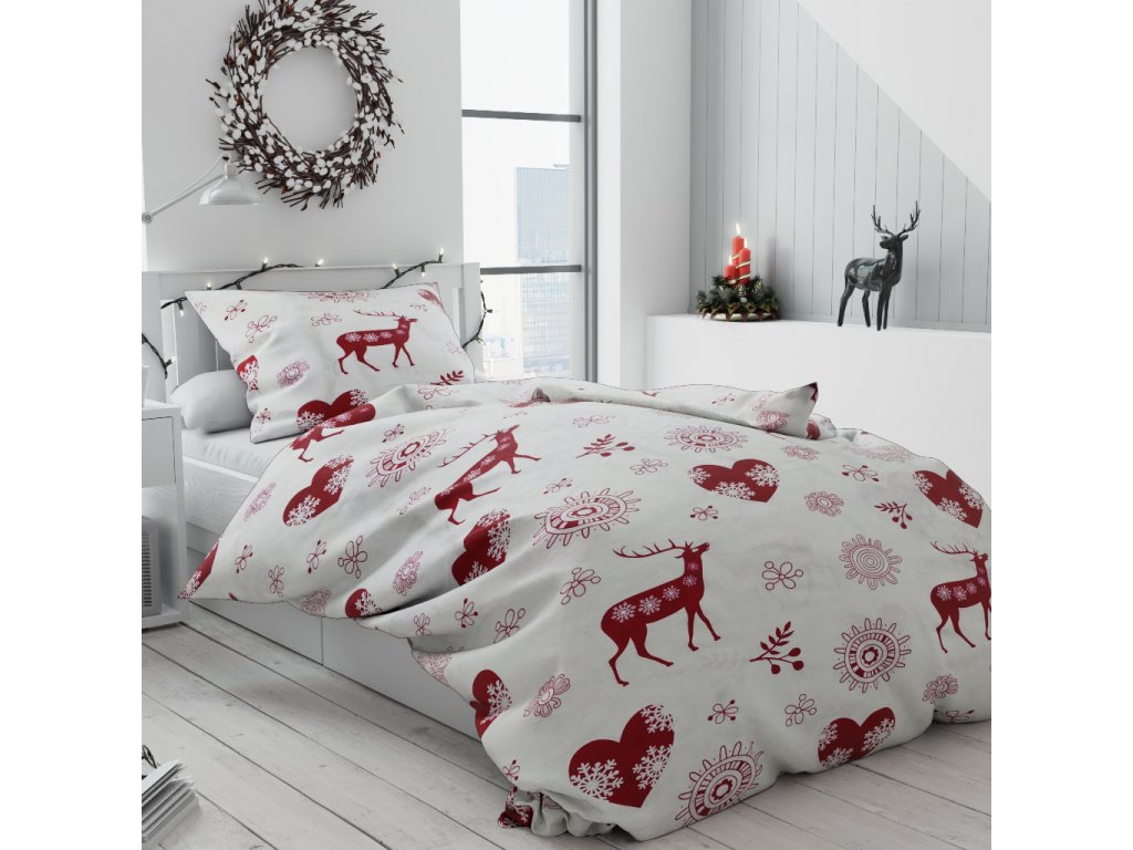 Karácsonyi pamut ágyneműhuzat Szív és rénszarvas