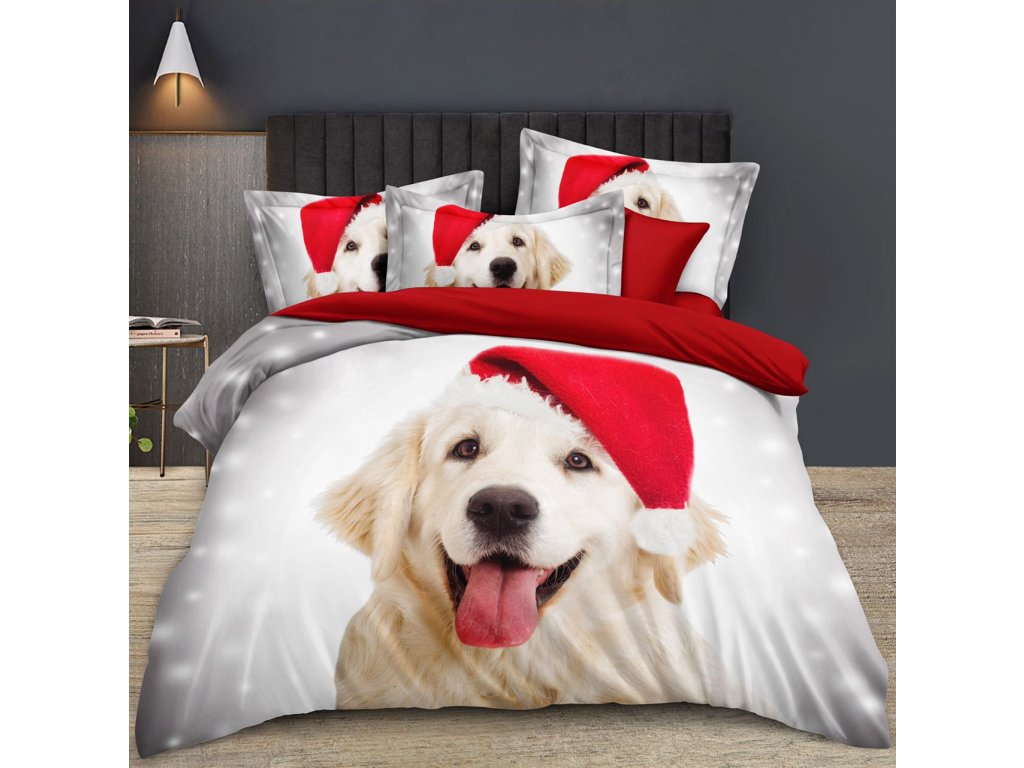 KARÁCSONYI SAPKÁS KUTYA világosszürke pamut ágyneműhuzat + 40 x 50 cm-es párnahuzat ingyen