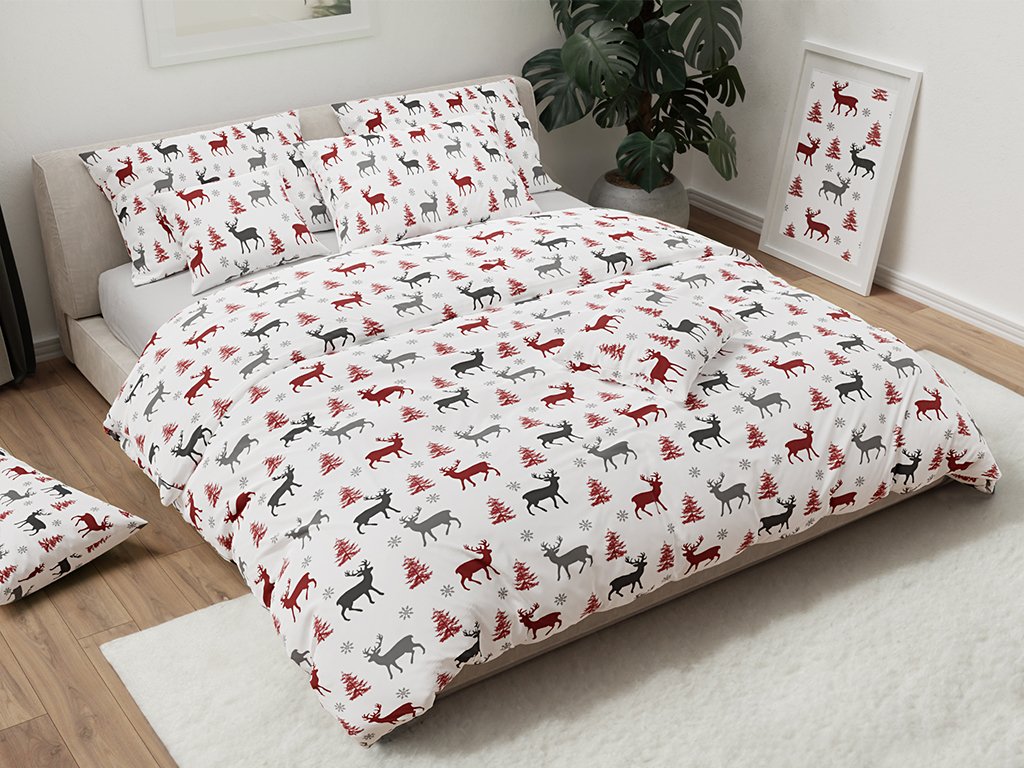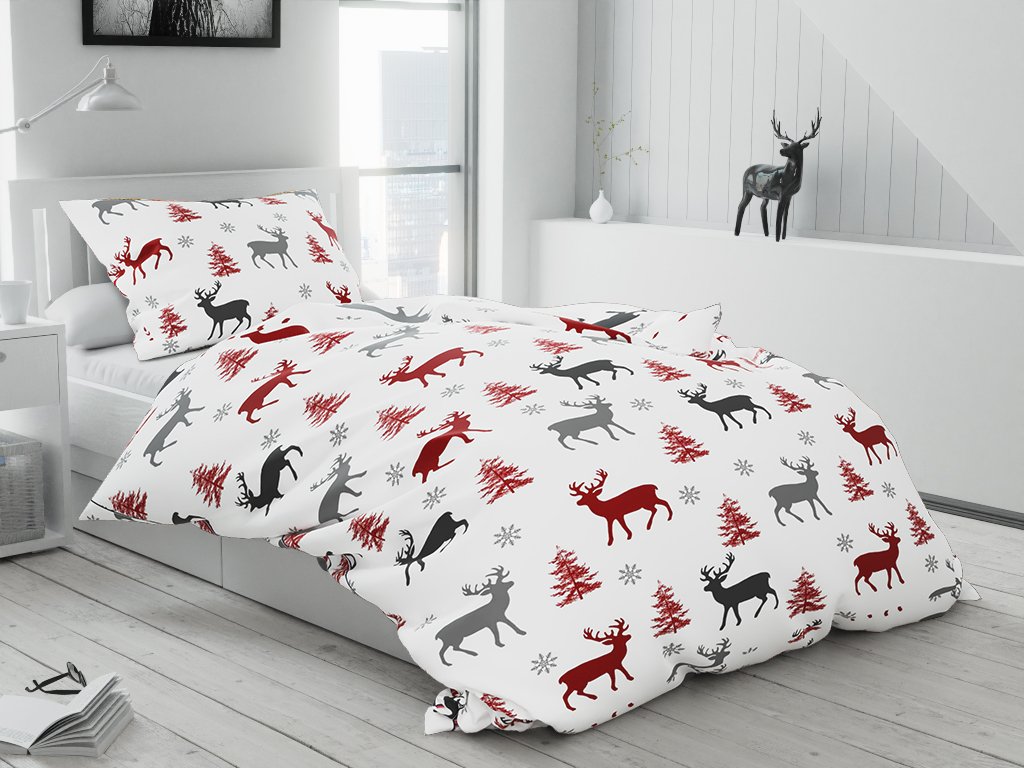 KARÁCSONYI SZARVAS fehér pamut ágyneműhuzat