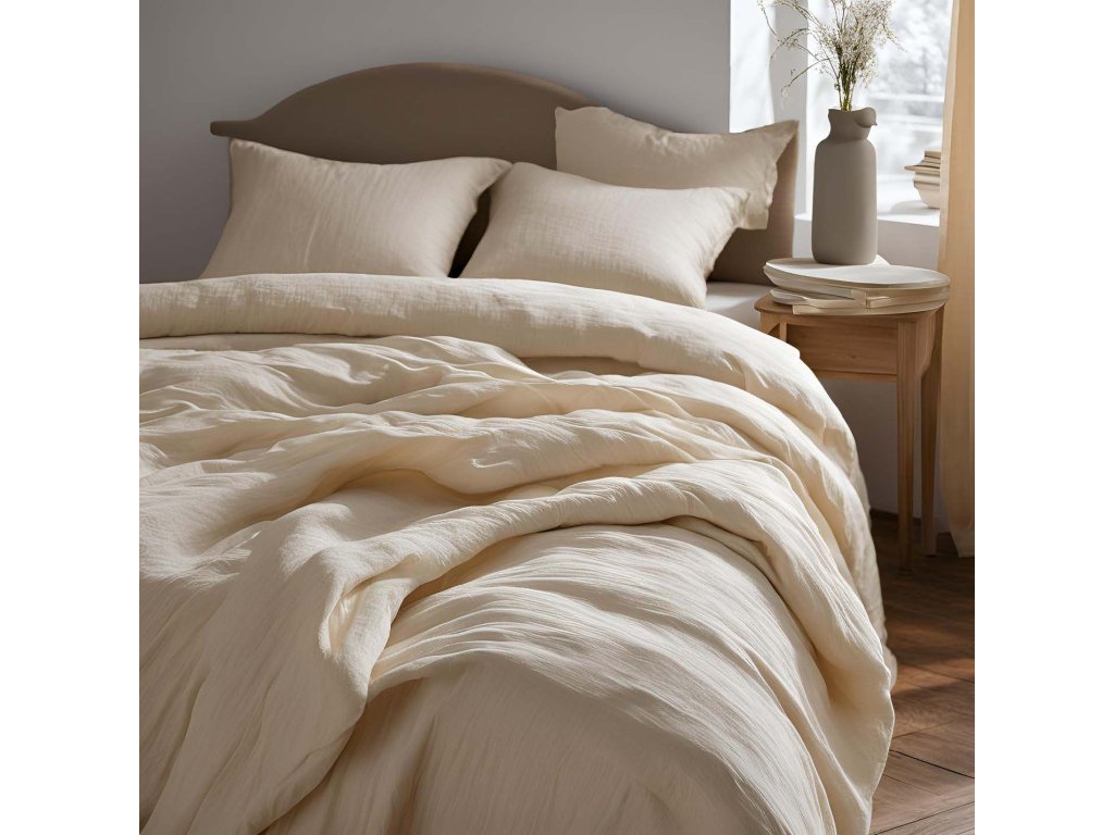 A 100% pamut muszlin ágyneműhuzat rendkívül könnyű, légies és kellemes tapintású, ideális a nyári hónapokra és egész éves kényelemre. Kiváló minőségű természetes fonalból készült nyitott szövésű fonalból, ami biztosítja a magas légáteresztést és a gyors száradást. Puhaságának köszönhetően érzékeny bőrre is alkalmas. Nem igényel vasalást, minden mosás után puhábbá válik, és a természetesen ráncos megjelenés szépen illeszkedik a skandináv, boho és természetes stílusú belső terekhez.