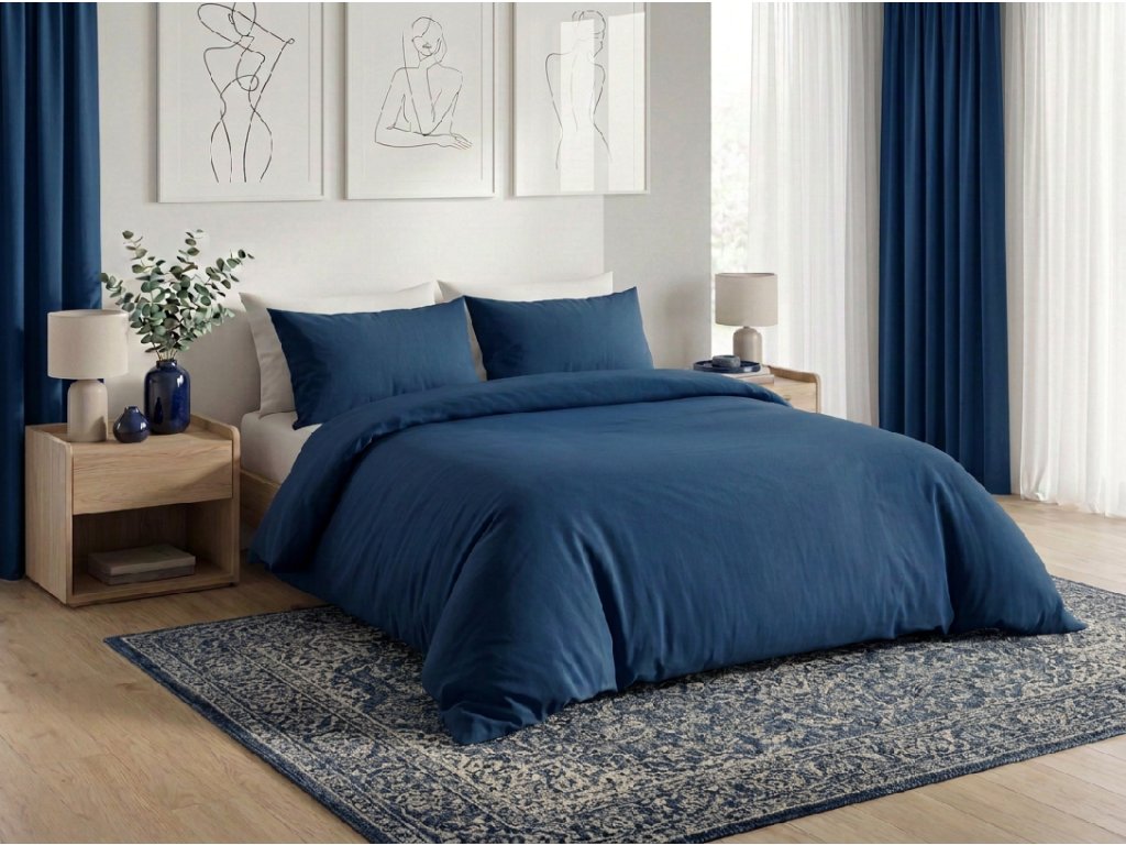 Pamut ágynemű CALMORA sötétkék