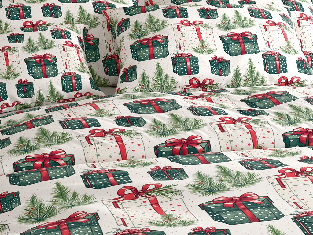 Pamut ágynemű CHRISTMAS PRESENT krémszínű