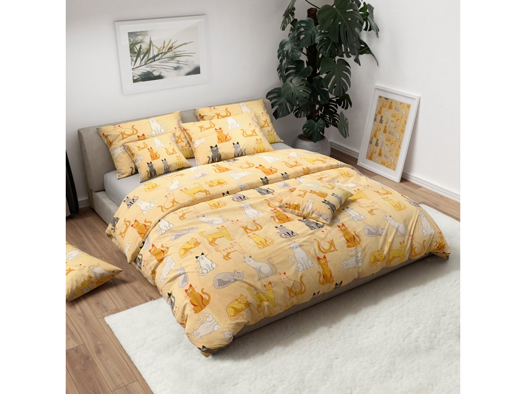 Pamut ágynemű CHROMA CATS krémszínű
