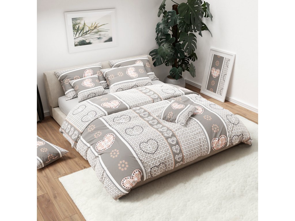 Pamut ágynemű HEART RETRO BLEND szürke hotelzsebbel