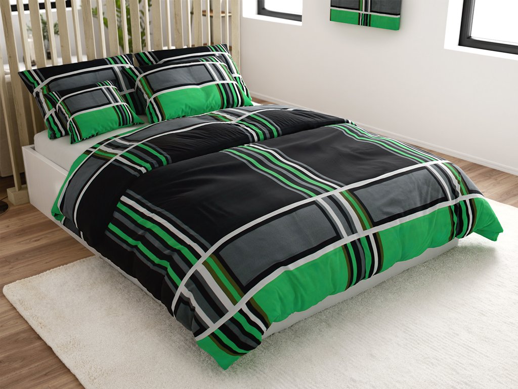Bavlněné povlečení KARO BLEND zelené s výrazným károvaným vzorem
