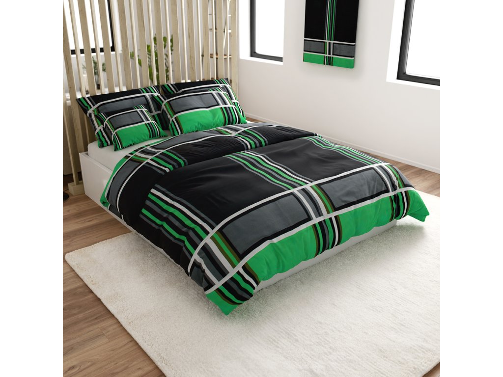 A Pamut ágyneműhuzat KARO BLEND friss zöld kombinációja modern energiát és stílust visz a hálószobába. A feltűnő kockás minta zöld, szürke, fekete és fehér színekben magabiztos és eredeti hatást kelt.