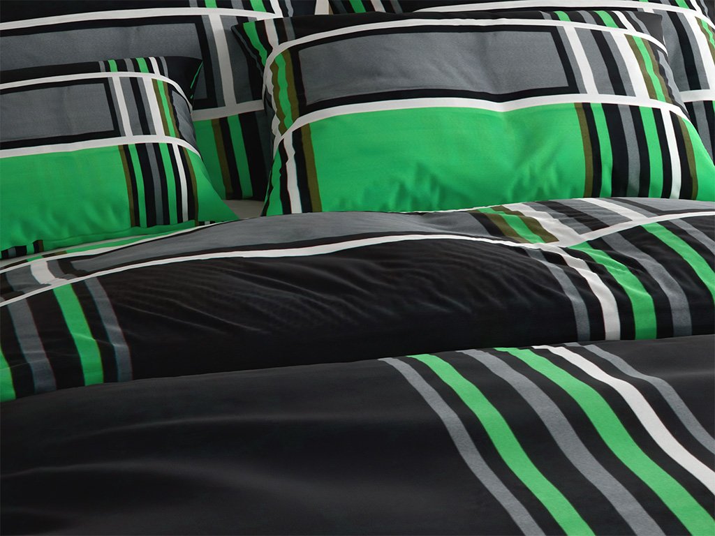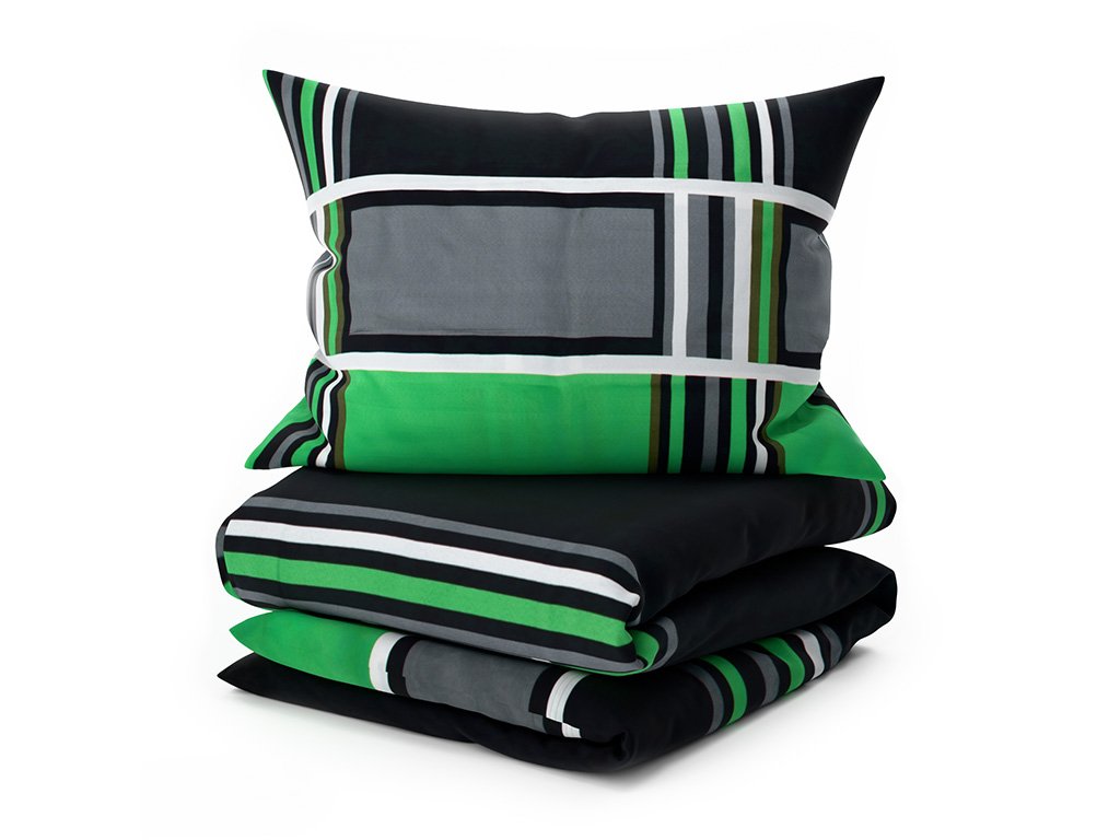 Kiválóan illeszkedik az urbánus és modern stílushoz, de a színek kombinációjának köszönhetően működhet sportosan berendezett tinédzser szobában is. Zöld pamut ágyneműhuzat diszkrét gombos záródással van ellátva.