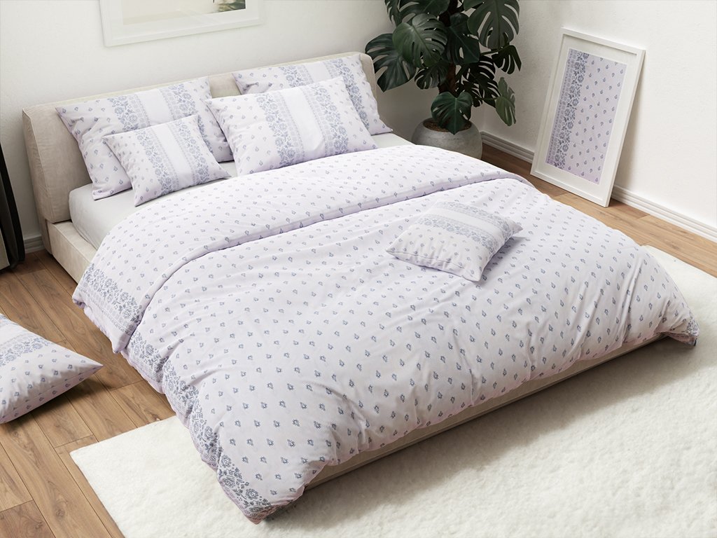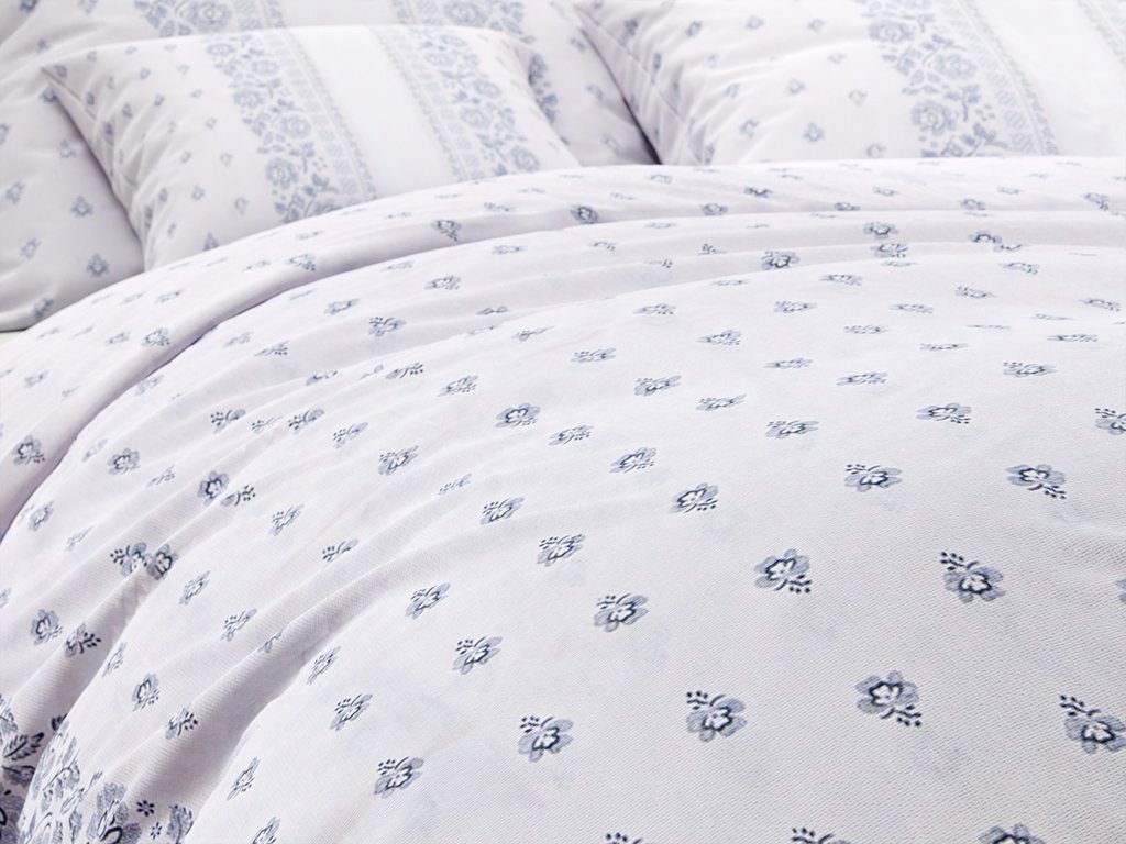 A kiváló minőségű pamut ágynemű nagyon népszerű puhasága, magas nedvszívó képessége és légáteresztő képessége miatt. A vidéki stílusú ágynemű virágos mintájával első pillantásra elnyeri a tetszését. A fehér alap szürke részletekkel, eredeti dizájnnal és finom textíliával kiemeli minden hálószoba megjelenését.