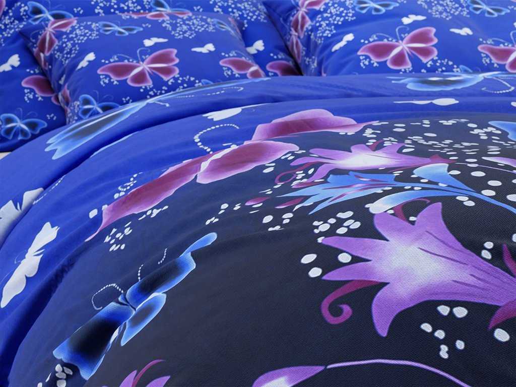 Pamut ágynemű VIOLET BUTTERFLY sötétkék