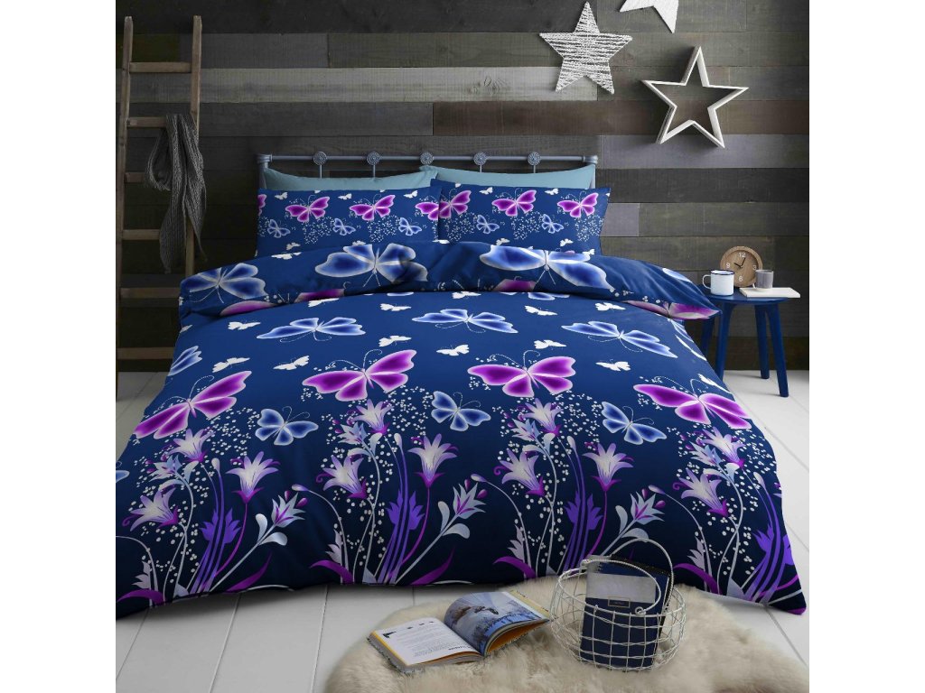 VIOLET BUTTERFLY sötétkék pamut ágyneműhuzat, 100% pamut